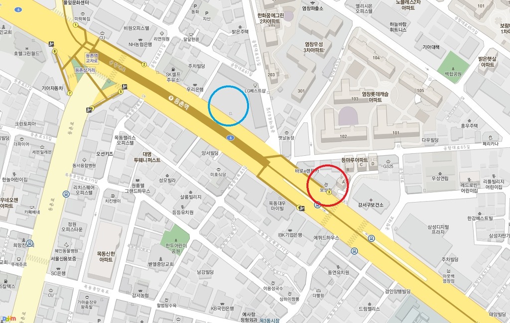 자가용-LG전자 주차장(약도 파랑색 원) 보성각 손님이라 하시고 주차하심 됩니다