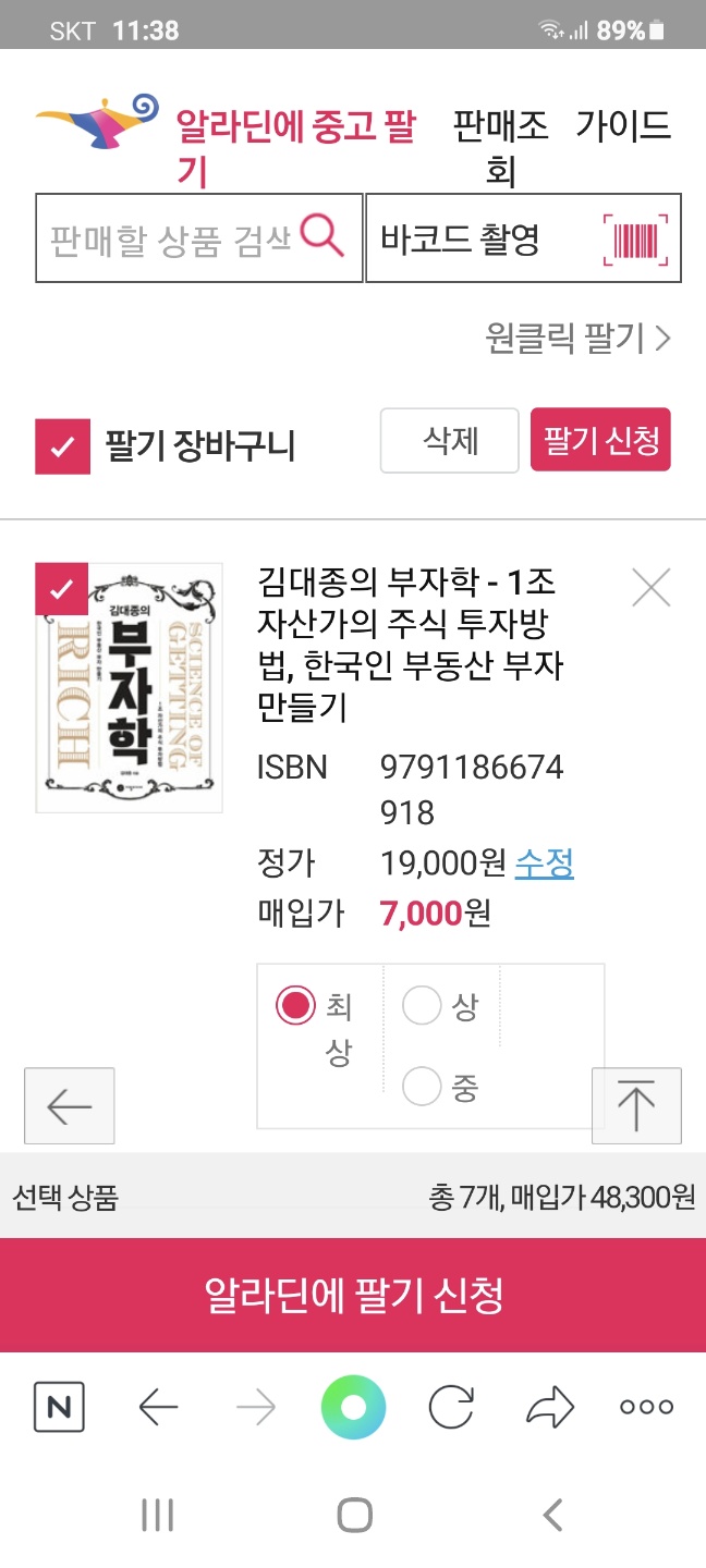 알라딘 중고책 다시 팔기 7000원 , 열심히 공부하시고 다시 판매해도 좋습니다 작성자아침햇살|작성시간22.03.13|조회수1,067 목록 댓글 0 글자크기 작게가 글자크기 크게가 20220313- 알라딘 중고책 다시 구매해주기 -7000원.jpg136.54KB 첨부파일첨부된 파일이 1개 있습니다. jpg 파일 20220313- 알라딘 중고책 다시 구매해주기 -7000원.jpg 다운로드 다음검색 현재 게시글 추가 기능 열기 북마크 공유하기 신고 센터로 신고 댓글 댓글 0 댓글쓰기 답글쓰기 댓글 리스트