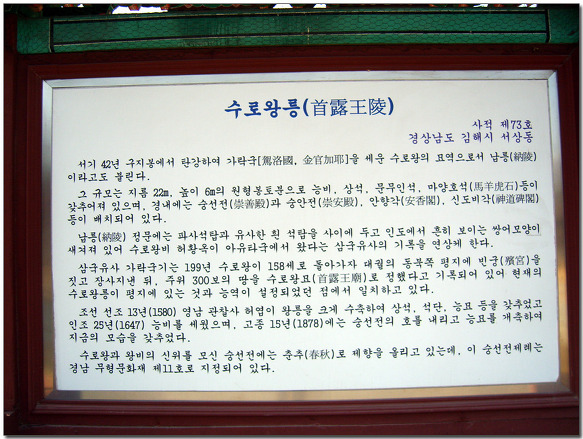 이튿날 알 속에서 여섯 동자(童子)가 나왔는데 그중 맨 먼저 나온 동자를 수로(首露)라고 이름 짓고 금합에서 태어났다하여 성(姓)을 김씨(金氏)로 하니 그가 바로 김해김씨의 시조인 김수로왕(金首露王)이다.”