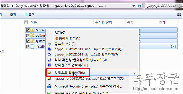 프로그램 설치하듯 압축 파일을 푸는 것이 가능합니다.