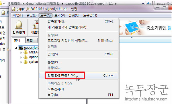 ▼ 그럼 알집으로 어떻게 EXE 를 만드는지 알아 볼까요?