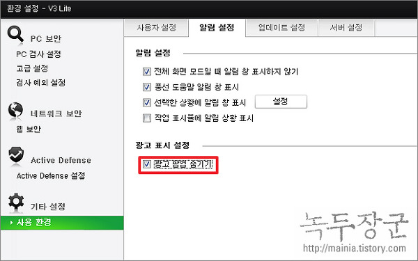 백신 V3 광고창 끄는법, 안뜨게 설정하는 방법 |