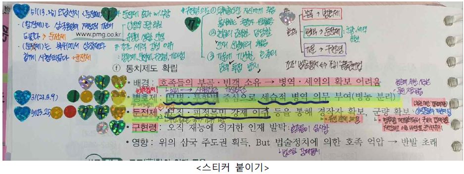 | 1. 역한서동 4개 과목 범위를 6개로 쪼개어 6명의 스터디원이 진행, 과목별로 6일 동안 진행 2. 자신의 파트를 각자의 선위 책에 단권화하고 밴드에 올려서 공유 3. 단권화 방법(사진 참고, 애매한 부분은 꼭 스터디장에게 질문): 기출 선지와 제시문은 선위에 글씨 아래 밑줄치기(모든 밑줄에 연도 표시), 기출 답안은 굵은 형광펜으로 글씨에 덧칠, 선위에 없는 내용은 텍스트로 입력 4. 각자의 기출 분석 시간은 자유이나, 맡은 요일의 23:59:59 까지 밴드에 올려야 함. * 단어 하나, 문구 하나, 예시와 표, 이미지, 사료 등 빠짐없이 전부 단권화! * 펜(갤럭시 삼성노트 기준) - 형광펜: 하늘색 농도 55(농도 너무 짙으면 pdf 전달 과정에서 글씨가 아예 가려집니다), 두께 50 - 펜: 하늘색 두께 15 - 텍스트 삽입 글자: 파란색 8-10 포인트 (칸 모자라면 줄여도 됌) |