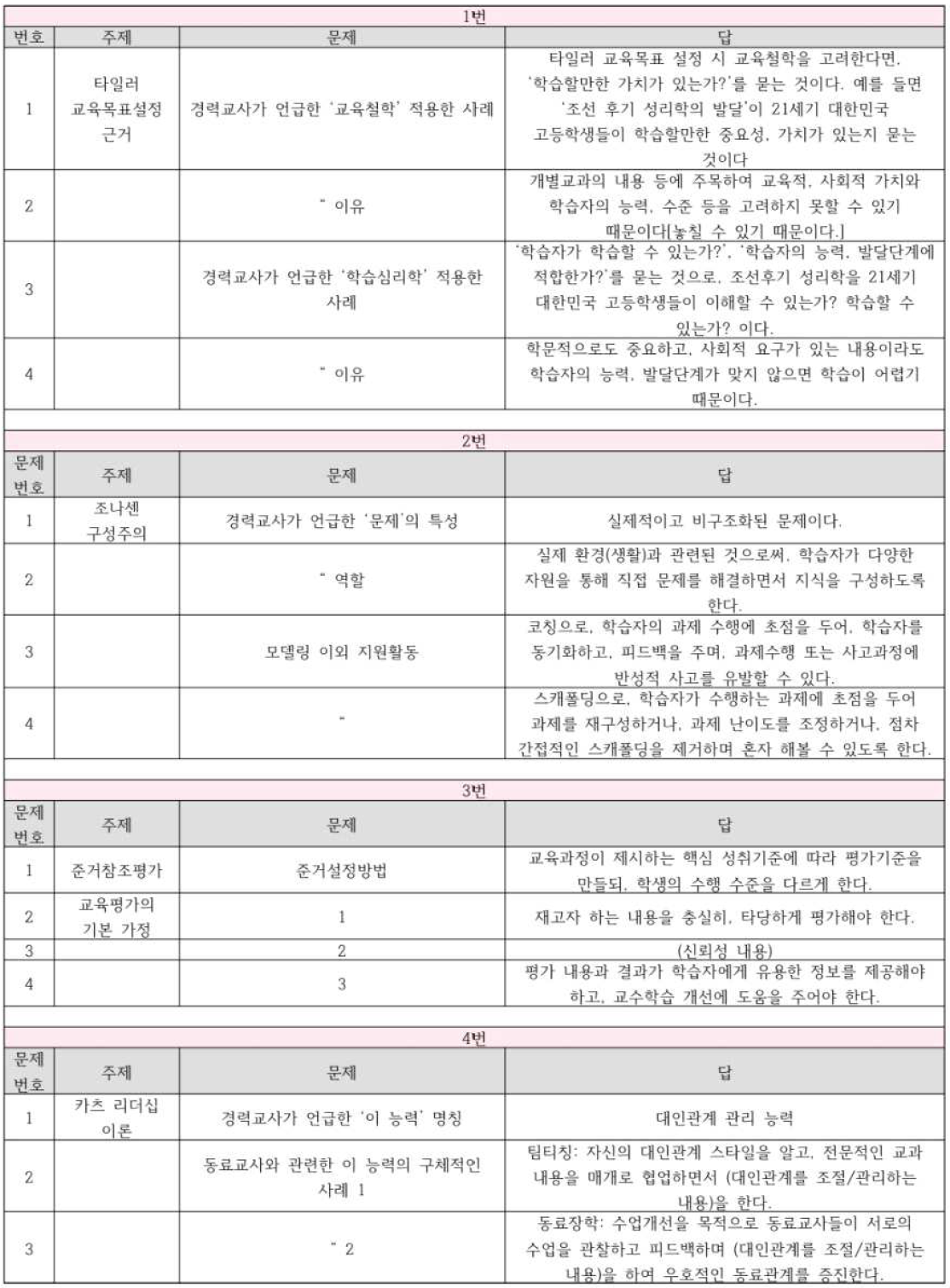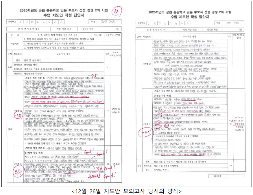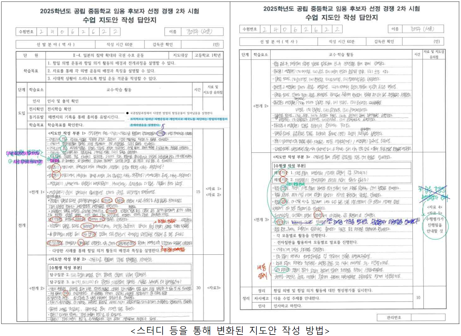 저는 스터디를 통해 지도안 작성 방법 등을 확립해나갈 수 있었는데요. 먼저 제 지도안 작성 방식의 변화를, 지도안 모의고사 때의 답안을 통해 보여드리겠습니다.