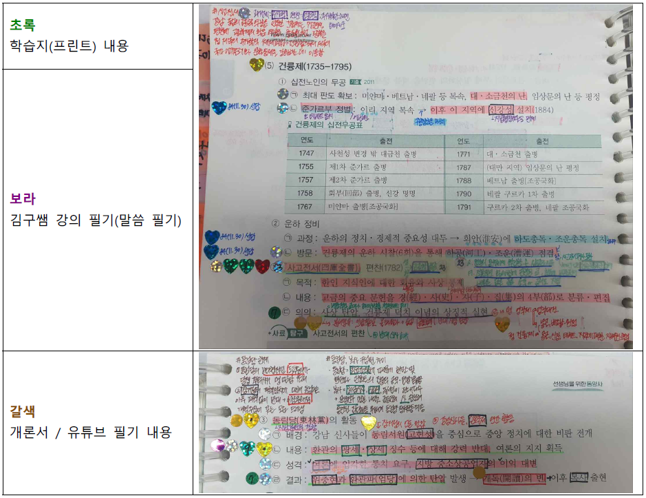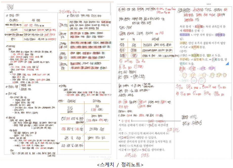 2회독 때는 판서 노트끼리 비교하면서 공부. 단, 교과서명으로 5개를 비교한 게 아니라 ‘한국사’ ‘동아시아사’ ‘세계사’ 3개를 엮어서 한국사 vs 역사2, 세계사 vs 역사1, 역사1의 동아시아사 부분 vs 세계사의 동아시아사 부분 vs 동아시아사를 비교함. 그렇게 5개의 파일을 3개의 파일로 만듦. 동아시아사의 경우 수능특강을 활용함