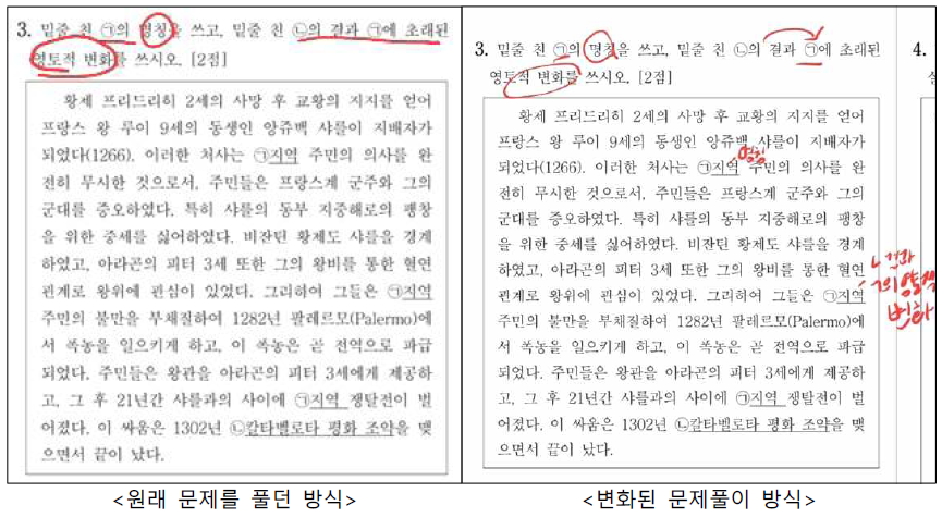 첫째, 예를 들어 ‘슐레지엔’이 지문/답지 혹은 오답/답지 등로 출제가 되었다면, 답/서술형 답/제시문/지도 등으로 완벽히 구분해서 파악․정리하는 것이었습니다.