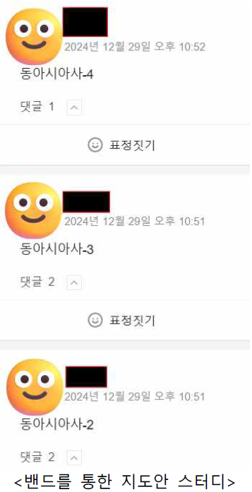 이 스터디를 밴드로 운영했는데, 밴드 사진은 다음과 같습니다. 제가 먼저 선위수(선생님을 위한 수업실연)에 있는 지도안 넘버를 과목별로 다 써서 게시물을 만들고 그 안에 선생님들께서 댓글로 파일을 올리시도록 했습니다.