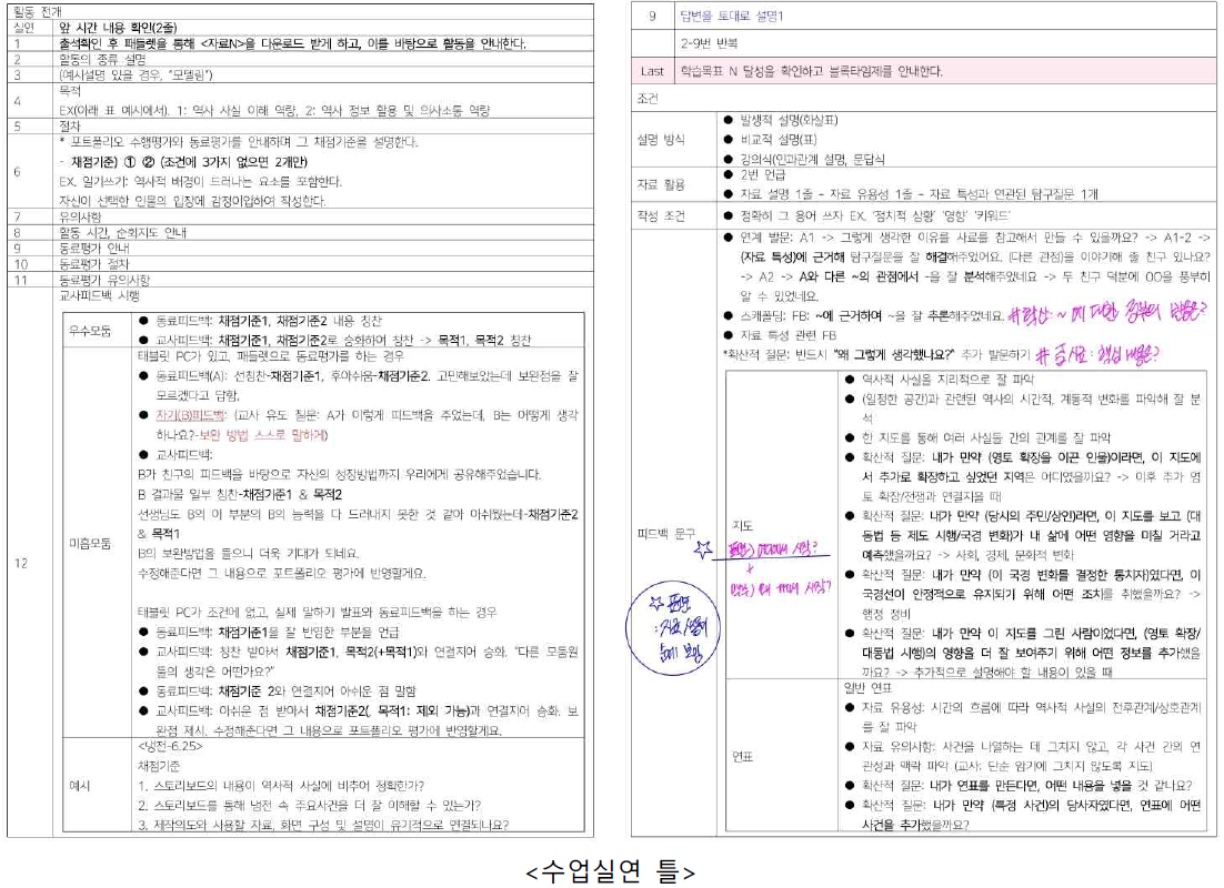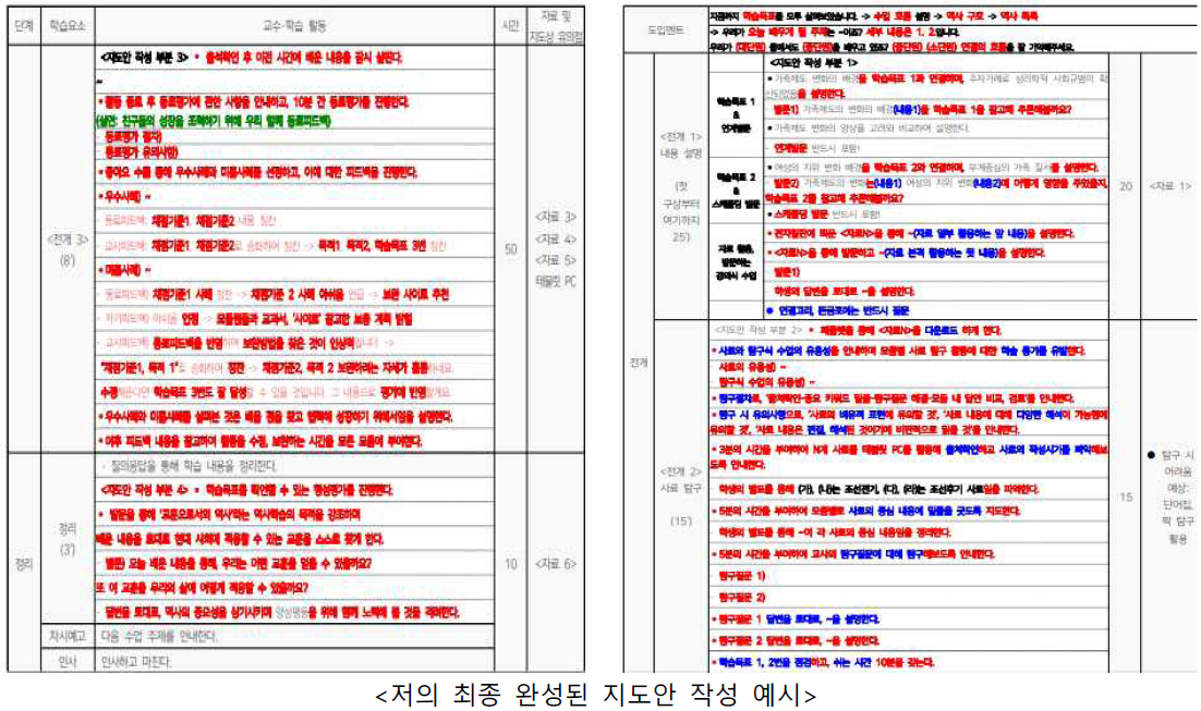 둘째, 두 분 선생님의 지도안을 볼 때 배울 점들은 따로 표시했습니다. 피드백 시간에 배우고 싶은 점입니다, 라고 말함과 동시에 그것을 따로 표시하고 반성 시간에 제게 반영하려고 많이 노력했습니다.
