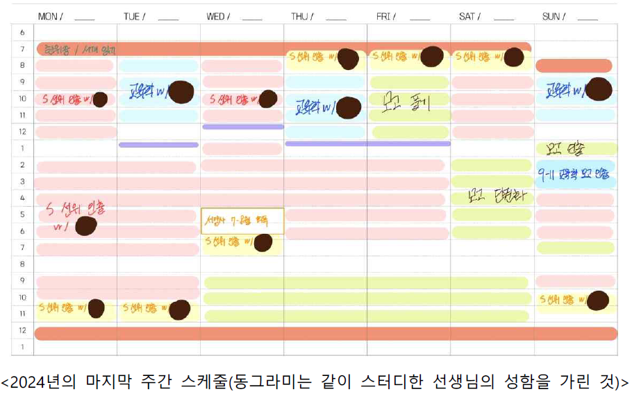 ◎ 기상 유의사항:2023년에는 노량진에서 직강을 다녔었는데, 그때는 새벽 4시 20분에도 학원에 도착했었는데 점점 기상 시간이 늦춰지더라구요;; 24년에는 처음부터 7시 반으로 생각하고 진행했었는데 무리하게 시간을 줄이기보다는 가능하신 시간을 찬찬히 테스트해보시면서 하루의 컨디션을 가장 좋게 만들 수 있는 시간을 정하시는 것이 좋겠습니다.