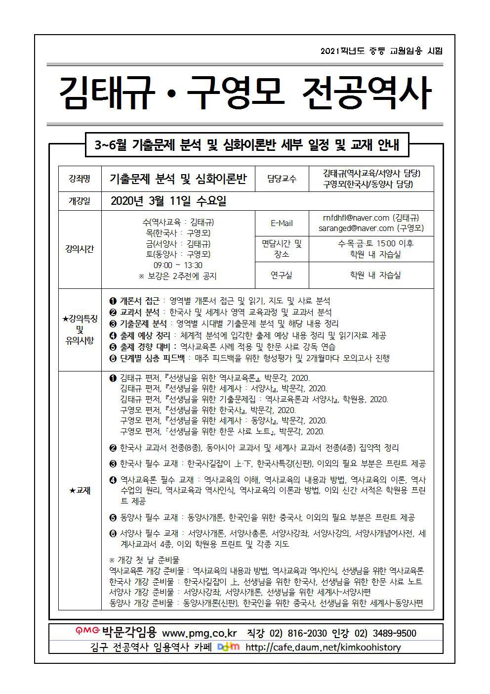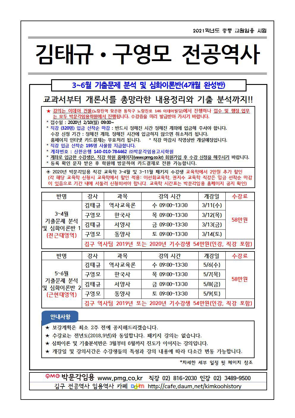 ★김구 전공역사★3~6월 기출문제 분석 및 심화이론반(4개월 완성반) : 2개월 수강신청 가능 작성자박문각임용고시학원|작성시간20.02.04|조회수1,855 목록 댓글 0 글자크기 작게가 글자크기 크게가 다음검색 현재 게시글 추가 기능 열기 북마크 공유하기 신고 센터로 신고 댓글 댓글 0 댓글쓰기 답글쓰기 댓글 리스트