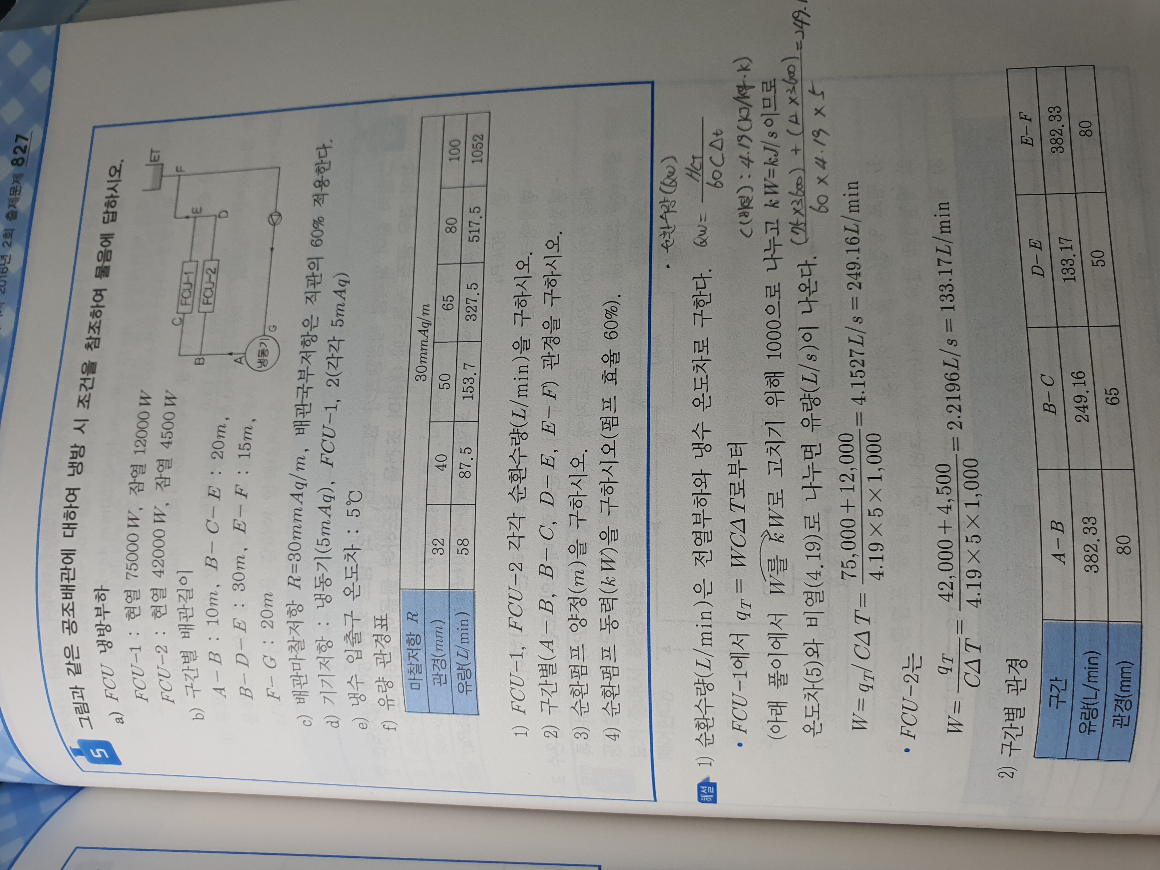직관배관은 75m에 30mmaq곱해서 2.25maq