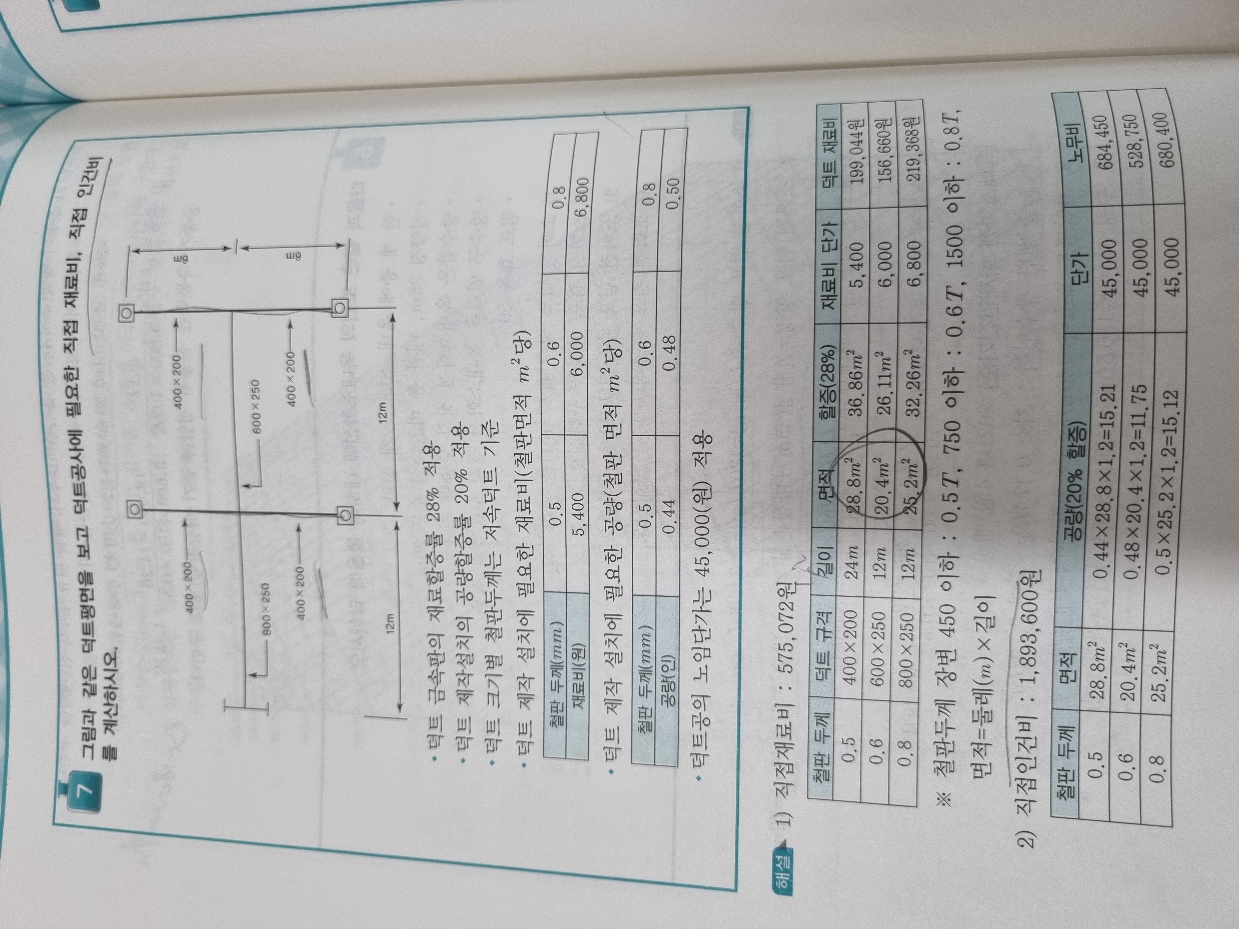 금정님이 설명 잘 해 주셨네요. (400mm+200mm+400mm+200mm) / 1000*24m=28.8m2 (1200mm/1000)=1.2m 1.2m*24m=28.8m2