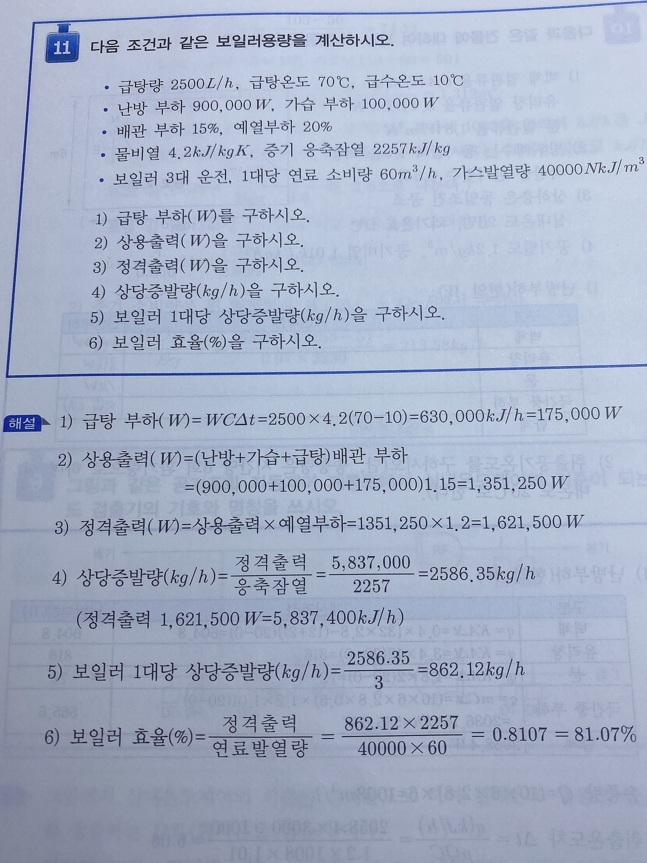 그리고 6번의 정격출력이 1대당 상당증발량이랑 증기 응축잠열을 곱한 것인데 이게 3번에서 구한 정격출력과 다릅니다.. 오타인건가요?