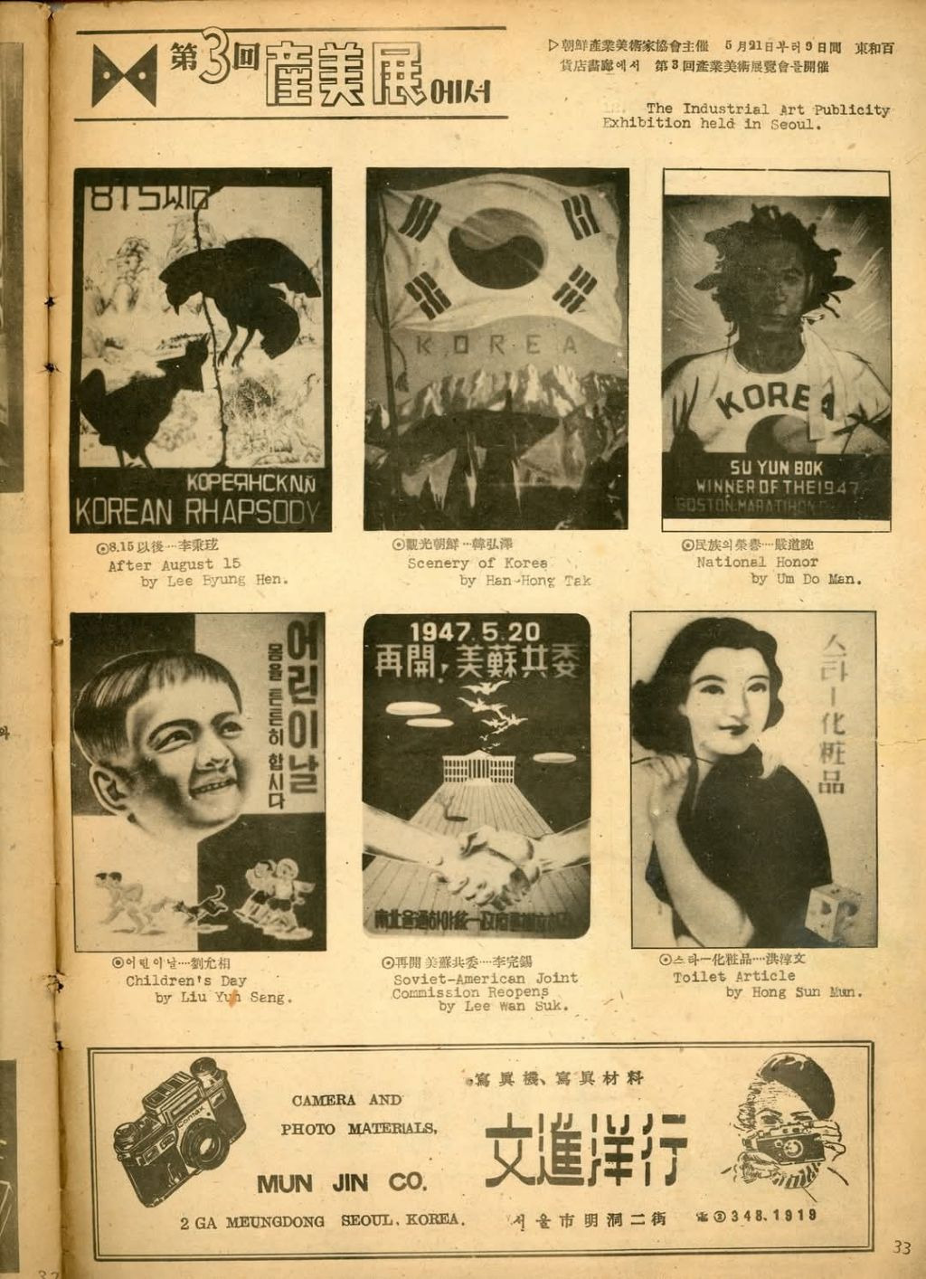 이병현은 연극무대 작업도 했는데, 1938년 낭만좌(浪漫座)란 신극단체의 연극 〈햄릿〉과 〈죄와 벌〉의 무대장치가 그것이다. 1938년이면 동료이자 절친인 김정환이 일본에 유학 중이라, 다양한 재능을 가진 이병현이 김정환을 대신한 것이라 여겨지는 대목이다. 아무튼 이병현은 1940년 이후에는 주로 산업디자인 영역에서 선구적 활동을 하면서 1945년 해방이 되자 한홍택등과 더불어 「조선산업미술가협회」를 창립하고, 1946~49년 조선산업미술가협회전시에 참가했다(도판25). 1948년 서울대학교 미술대학 초대 도안과 교수를 거쳐 1950년 39세 이른 나이에 작고한다. 이병현의 자료가 유난히 없는 것은 그의 요절 때문에 제대로 된 기록이 남지 않아서 그런 듯싶다.