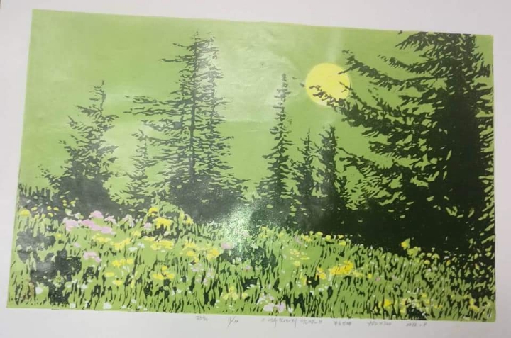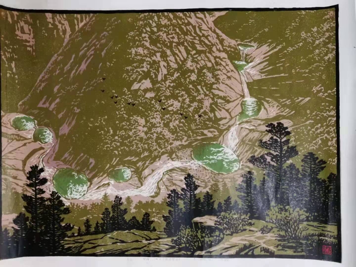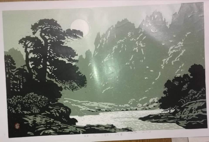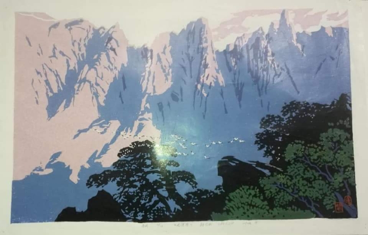 3. 인쇄용지인 아트지에 북녘 산하를 웅장하게 표현한 유성다색목판화로 중국 북대황판화의 경향을 띠고 있는 것