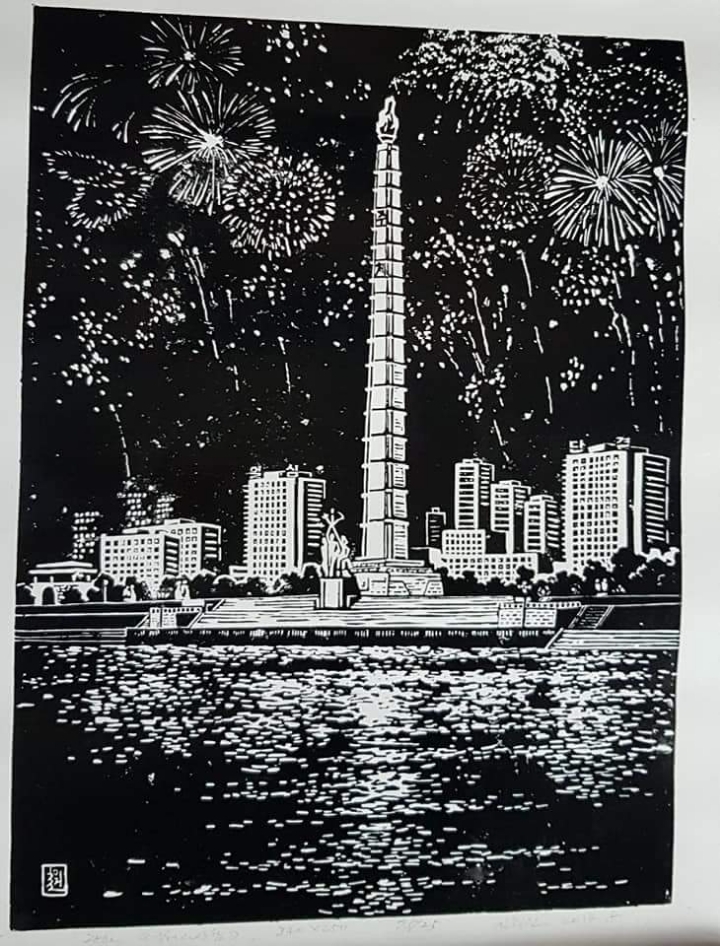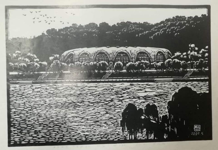 1. 볼록판화 고유의 칼맛을 살려 흑백대비로 간결하게 중요 사적 등을 그린 것.