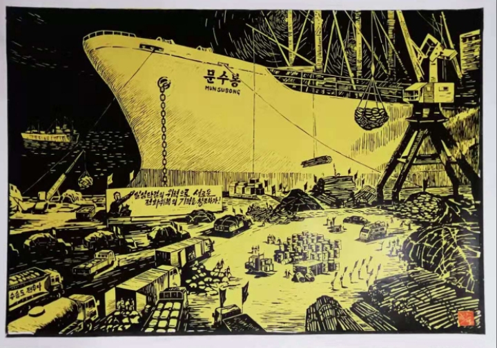 4. 건설현장등 사회적 이슈(또는 사회 선동), 그들의 영웅적인 혁명역사(일제 식민지 무장투쟁/6.25전쟁)를 표현한 것