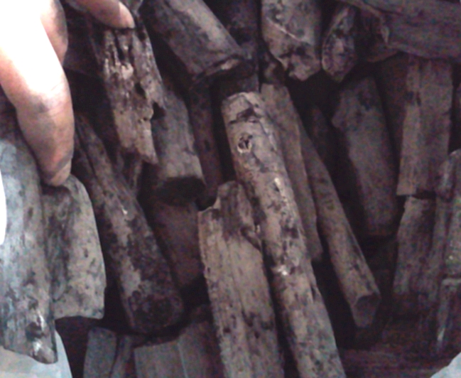 우리나라의 참숯처럼.....국화무늬에 ....잘 절단된면을 갖는 숯....