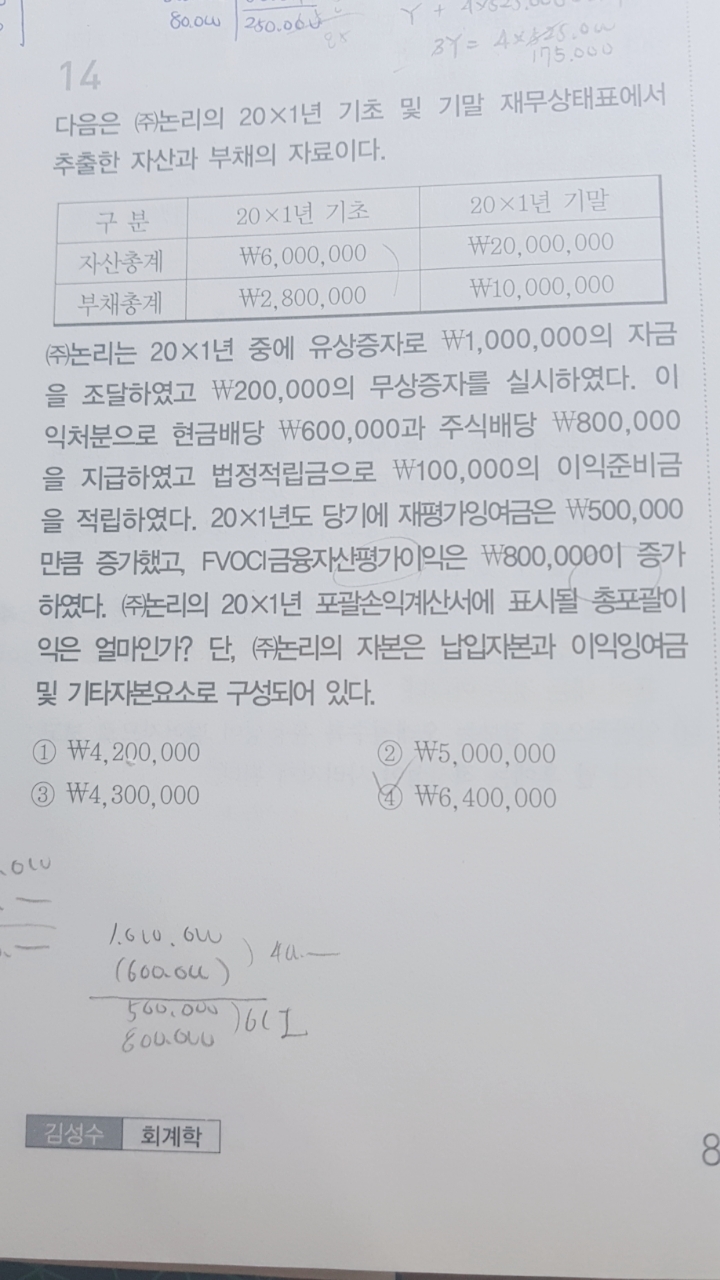 6,400,000 - 800,000(FVOCI금융자산 평가이익)
