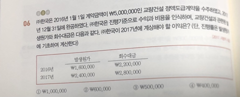 작성자김성수 작성시간 21.11.05 6번 문제가 조금 애매하게 출제되었으나 : 16년 누적손익을 찾을시 16년(총계약원가-총예상원가)*누적진행률이며, 여기서 총예상원가는 1,600,000원과 2,400,000원을 합한 금액이 되는 것입니다.