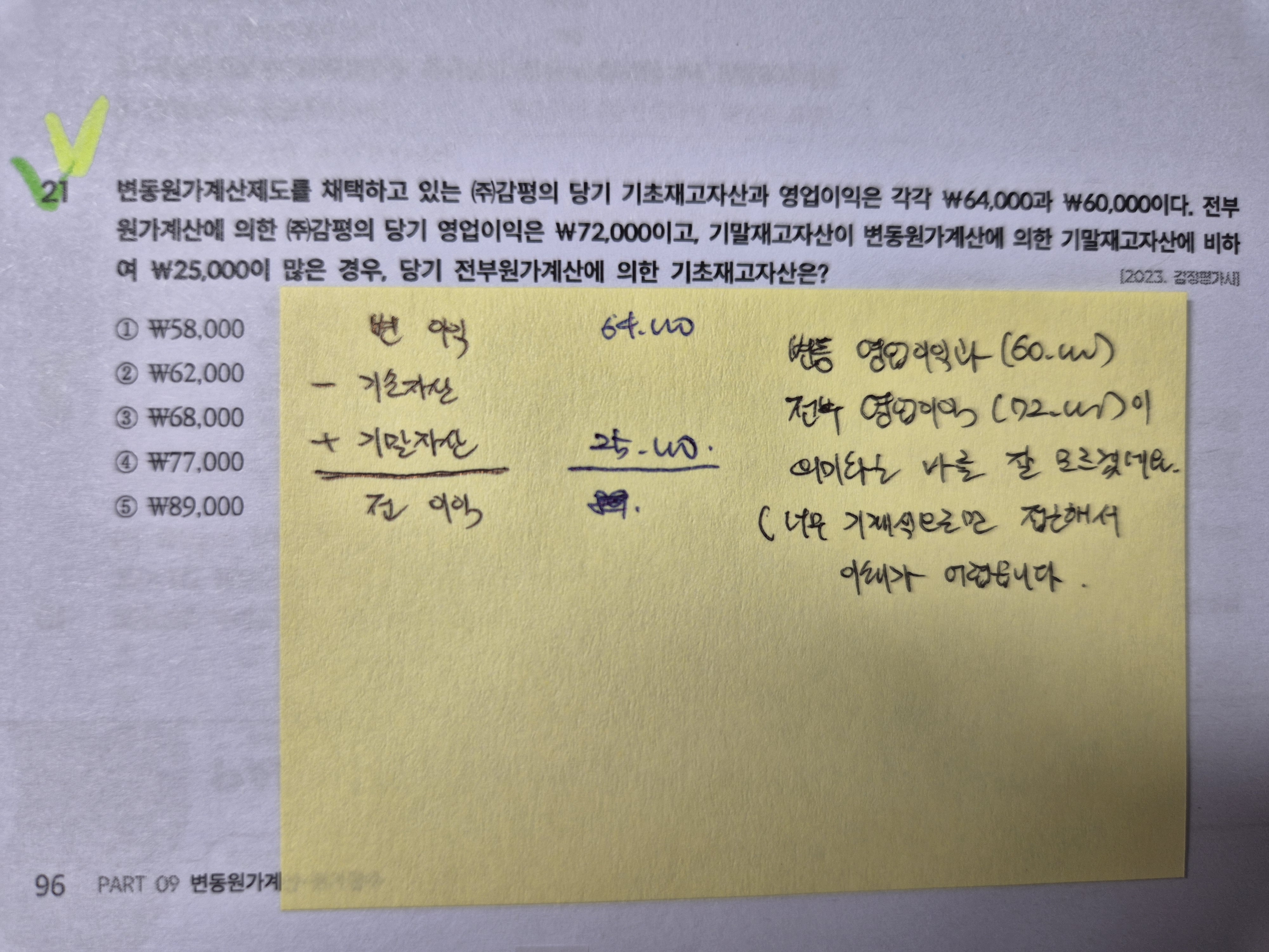 작성자김성수 작성시간 25.12.06 21번 : 변동원가계산과 전부원가계산의 차이는 고정제조간접비가 제조원가인지? 아닌지?입니다.