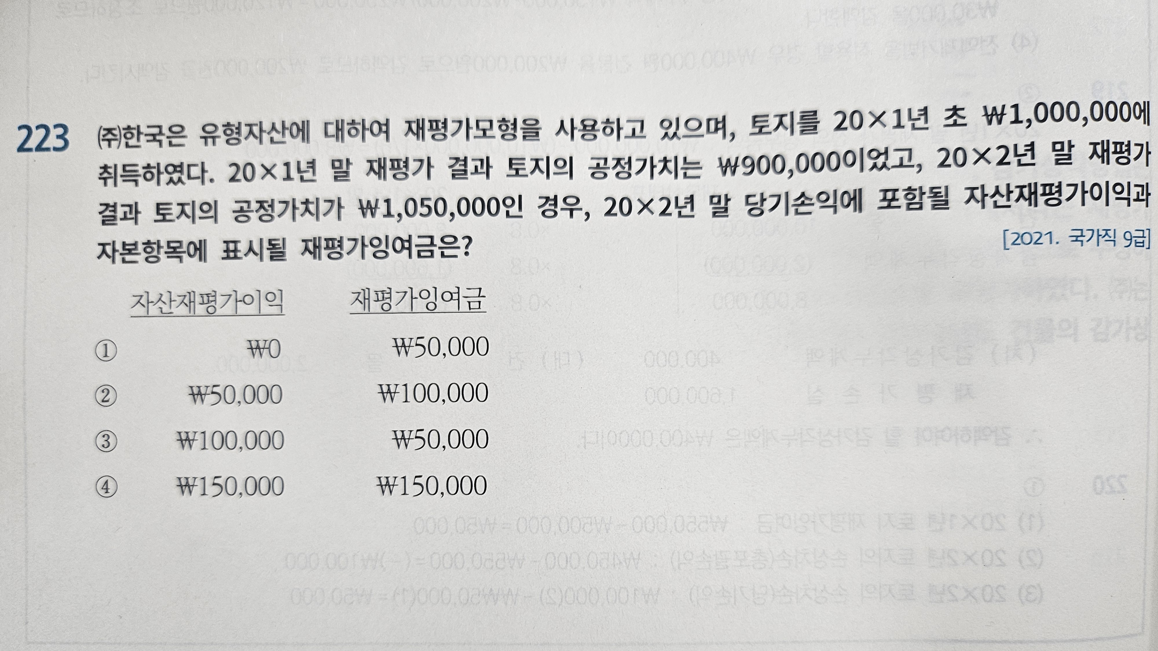 STEP BY STEP p144 233번 작성자찬스패기|작성시간26.01.17|조회수40 목록 댓글 1 글자크기 작게가 글자크기 크게가 해설에 따르면 20X2년 말 당기손익에 포함될 자산재평가이익은 ₩1,000,000-₩900,000=₩100,000이라는데 20X1년 말 토지의 공정가치가 왜 자산재평가이익을 구하는 과정에 들어가는건가요? 다음검색 현재 게시글 추가 기능 열기 북마크 공유하기 신고 센터로 신고 댓글 댓글 1 댓글쓰기 답글쓰기 댓글 리스트 작성자김성수 | 작성시간 26.01.18 재평가모형은 장부금액 여기서는 1,000,000원을 기준으로 그 이하는 당기손익, 그 이상은 기타포괄손익이 됩니다.그러므로 1,000,000원까지 상승분인 100,000원이 당기손익, 초과된 50,000원이 기타포괄손익이 되는 것으로 이해하시면 됩니다. 댓글 전체보기