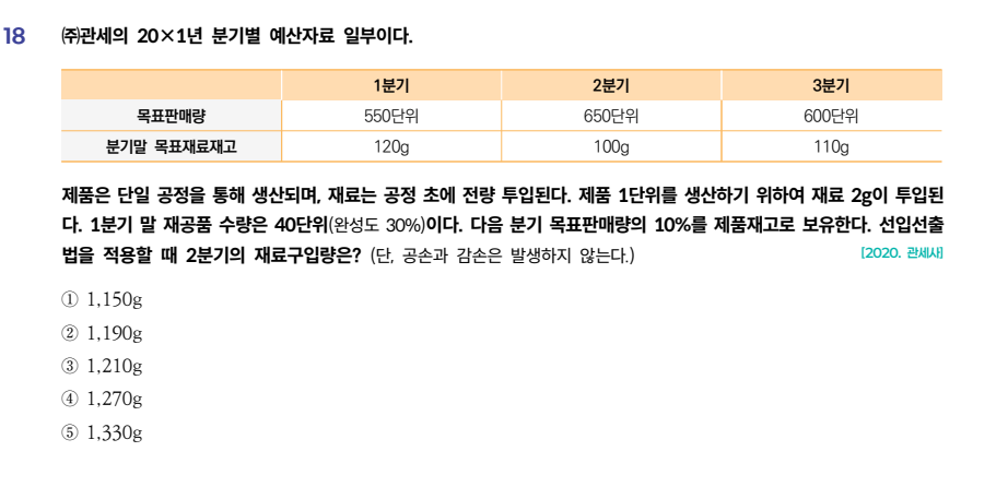 실력다지기 원가관리 단기특수파트18번 작성자chom|작성시간26.02.06|조회수35 목록 댓글 2 글자크기 작게가 글자크기 크게가 40g부분이 이해가 안갑니다. 재료랑 제품은 구했는데 재공품계정을 어떻ㄱ[연결시킬지 모르겠어요 다음검색 현재 게시글 추가 기능 열기 북마크 공유하기 신고 센터로 신고 댓글 댓글 2 댓글쓰기 답글쓰기 댓글 리스트 작성자김성수 | 작성시간 26.02.06 기초제품 : 65개제품판매량 650개기말제품 : 60개당기제품완성수량 : 650+60-65=645개기초재공품 : 40개당기제품완성수량 : 645개기말재공품 : 0개당기투입수량 : 605개기초원재료 120g당기투입재료 : 605개*2g기말원재료 : 100g재료구입량 : 605개*2g+100g-120g=1,190g이렇게 계산됩니다. 답댓글 작성자chom 작성자 본인 여부 작성자 | 작성시간 26.02.07 감사합니다 댓글 전체보기