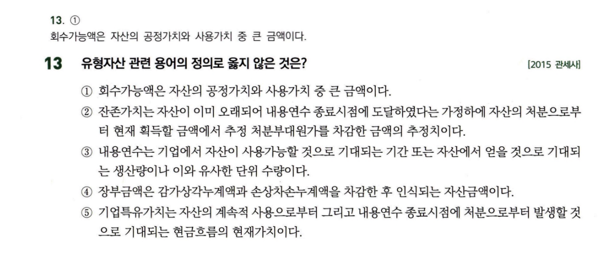 유형자산2 질문 작성자chom|작성시간26.02.12|조회수30 목록 댓글 1 글자크기 작게가 글자크기 크게가 해설지가 이상합니다. 답이뭘까요? 다음검색 현재 게시글 추가 기능 열기 북마크 공유하기 신고 센터로 신고 댓글 댓글 1 댓글쓰기 답글쓰기 댓글 리스트 작성자김성수 | 작성시간 26.02.13 1번이 정답이며, 해설이 회수가능액은 자산의 순공정가치와 사용가치 중 큰금액입니다. 댓글 전체보기