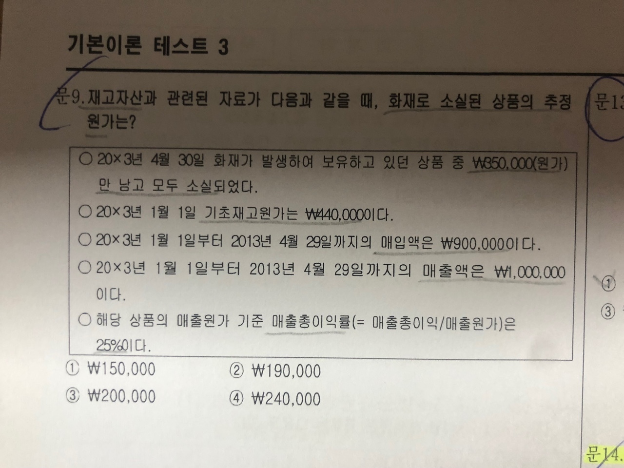 이 공식으로 9번 문제의 매출원가를 구하면, '매출원가 = 1,000,000 x (1-25%)' -> '매출원가 = 1,000,000 x 75%'가 돼서 매출원가가 750,000원이 되어야 맞지 않나요?