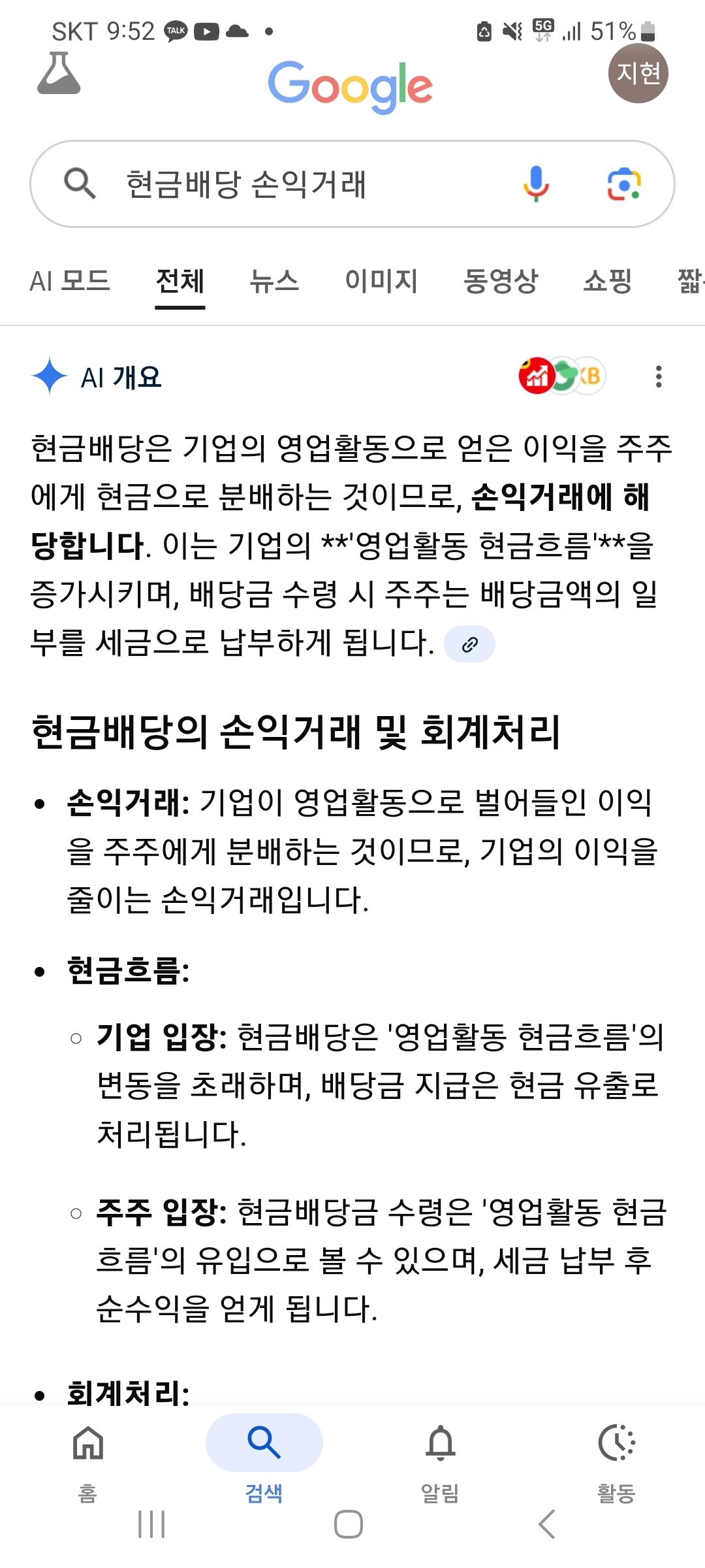 (헷갈려서 인터넷에 찾아봤는데, 구글에도 현금배당은 손익거래라고 나옵니다 ㅠㅠ)