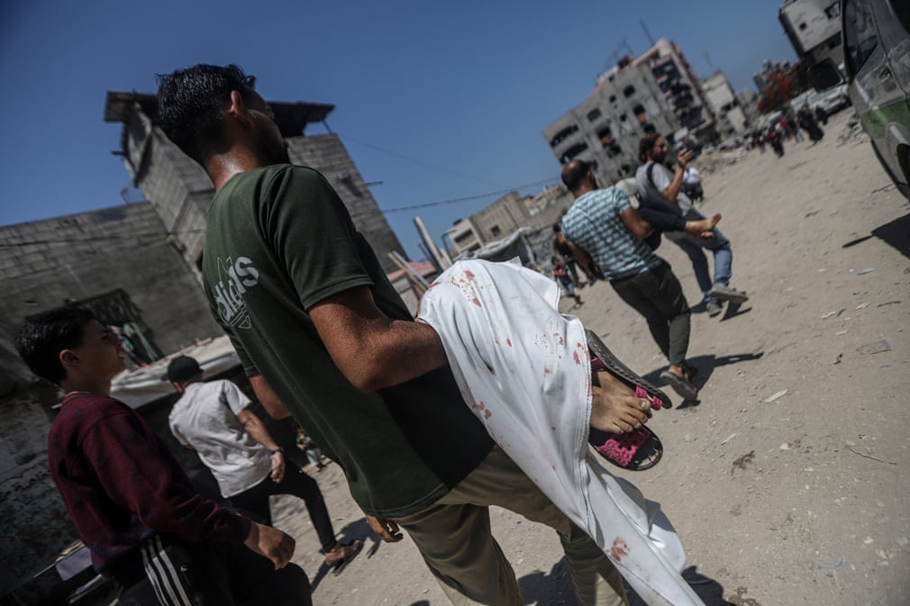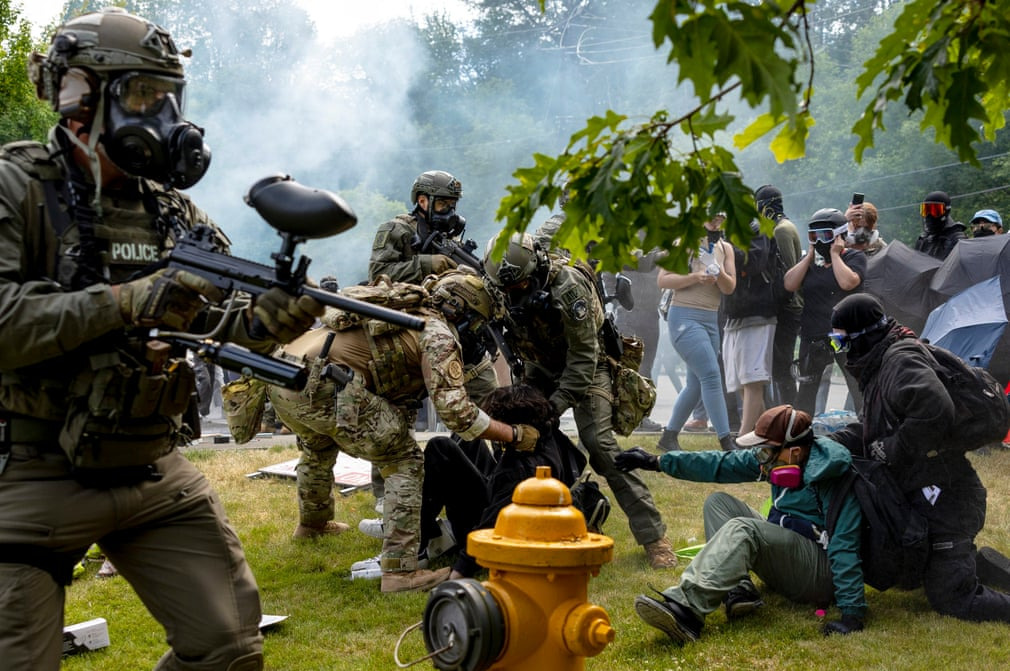 Twenty photographs of the week 금주 최고의 월드 보도사진 20選 The week around the world in 20 pictures 💥🏙️Palestinians rush for cover as debris flies around them after an Israeli strike in Gaza. # Eyad Baba/AFP/Getty Images 이스라엘의 가자지구 공습 이후 팔레스타인인들이 잔해가 그들 주변으로 날아오자 서둘러 엄폐물을 찾고 있다. 세계 최고의 사진기자들이 지난 7일간 포착한 보도사진들: 이스라엘에 대한 이란의 미사일 공격, 로스엔젤레스의 시위, 리비우에서 훈련을 받고 있는 10대들과 법정의 니캡. Iranian missile strikes on Israel, protests in Los Angeles, teenagers training in Lviv and Kneecap in court: the past seven days as captured by the world’s leading photojournalists. Jim Powell Warning: this gallery contains images that some readers may find distressing 경고: 이 갤러리에는 일부 독자에게 불쾌감을 줄 수 있는 이미지가 포함되어있다. Sat 21 Jun 2025 07.00 BST 1. Tel Aviv, Israel. An off-duty Israeli soldier carries an M16 assault rifle as she walks near Tel Aviv’s beachfront. Iranian missiles this week struck the Israeli cities of Tel Aviv and Haifa, destroying homes and fuelling concerns among world leaders at this week’s G7 meeting that the conflict between the two regional enemies could lead to a broader Middle East war. # Ohad Zwigenberg/AP 이스라엘 텔아비브. 비번인 이스라엘 군인이 M16 돌격소총을 들고 텔아비브 해변 근처를 걸어간다. 이번 주 이란의 미사일이 이스라엘 텔아비브와 하이파를 공격하여 주택들을 파괴했고, 이번 주 G7 회의에 참석한 세계 지도자들은 두 지역의 적대국 간의 갈등이 더 광범위한 중동 전쟁으로 이어질 수 있다는 우려를 표명했다. 2. Ramat Gan, Israel. A baby is evacuated from the site of a direct hit from an Iranian missile strike in Ramat Gan. The conflict started when Israel launched hundreds of airstrikes on Iran in the early morning of last Friday, in what it said was an operation aimed at preventing Iran from obtaining a nuclear weapon. Iran quickly responded with a barrage of missiles and drones, triggering a tit-for-tat cycle of bombing between the two countries. # Oded Balilty/AP 이스라엘 라마트 간. 이란 미사일 공격으로 직격탄을 맞은 라마트 간에서 아기가 대피하고 있다. 이 분쟁은 지난 금요일 이른 아침 이스라엘이 이란에 수백 차례의 공습을 가하면서 시작되었다. 이스라엘은 이를 이란의 핵무기 확보를 막기 위한 작전이라고 주장했다. 이란은 즉각 미사일과 드론으로 대응했고, 양국 간 보복 폭격의 악순환이 촉발되었다. 3. Gaza. Palestinians, including children, who lost their lives, are brought to al-Shifa hospital for funerals after an Israeli military attack in Gaza. Dozens more Palestinians were killed or injured in Gaza as they sought desperately needed aid on Thursday, with reports that Israeli forces close to one distribution point had opened fire, the third such incident in as many days. # Khames Alrefi/Anadolu/Getty Images 가자지구. 이스라엘군의 가자 공격 이후 목숨을 잃은 어린이를 포함한 팔레스타인인들이 장례식을 위해 알시파 병원으로 이송되고 있다. 며칠 만에 세 번째 사건으로 이스라엘군이 한 배급소 근처에서 발포했다는 보도와 함께, 수십 명의 팔레스타인인이 목요일 절실히 필요한 지원을 요청하던 가자지구에서 사망하거나 부상을 입었다. 4. Gaza. Palestinians rush for cover as debris flies around them after an Israeli strike on the Bureij camp for refugees in central Gaza. At least eight Palestinians were killed and dozens more wounded on Sunday in shooting near food distribution points in Gaza. Residents have described an escalation of Israeli attacks alongside the new conflict with Iran. # Eyad Baba/AFP/Getty Images 가자지구. 이스라엘군이 가자지구 중부 부레이지 난민 캠프를 공격한 이스라엘의 가자지구 공습 이후 팔레스타인인들이 잔해가 그들 주변으로 날아오자 서둘러 엄폐물을 찾고 있다. 일요일 가자지구 식량 배급소 근처에서 발생한 총격으로 최소 8명의 팔레스타인인이 사망하고 수십 명이 부상을 입었다. 주민들은 이란과의 새로운 갈등과 함께 이스라엘의 공격이 확대되고 있다고 말했다. 5. Nairobi, Kenya. A pro-government counter-protester holds a wooden club as he runs through downtown Nairobi during a protest over the death of Kenyan blogger Albert Ojwang in police custody. # Thomas Mukoya/Reuters 케냐 나이로비. 케냐 블로거 앨버트 오즈왕이 경찰에 구금되어 사망한 것에 항의하는 시위 중 친정부 반대 시위자가 나이로비 시내를 달리고 있을 때 나무 곤봉을 들고 있다. 6. Tukwila, Washington, US. Ice and border patrol agents grab a protester outside the Department of Homeland Security field office in Tukwila. As tanks and soldiers paraded through the streets of Washington on Saturday, several million people around the country turned out to protest against the excesses of Donald Trump’s administration. # Nick Wagner/The Seattle Times/AP 미국 워싱턴주 투퀼라. 미국 이민세관단속국(ICE)과 국경 순찰대원들이 투퀼라에 있는 국토안보부 현장 사무소 밖에서 시위자를 붙잡는다. 탱크와 군인들이 토요일 워싱턴 거리에서 행진하는 동안 전국 수백만 명의 시민들이 도널드 트럼프 행정부의 과잉 대응에 항의하기 위해 모였다. 7. Los Angeles, California. Demonstrators stand up to law enforcement on horseback during a protest in Los Angeles. Protests, dubbed No Kings, took place at about 2,100 sites nationwide last Saturday, from big cities to small towns. A c