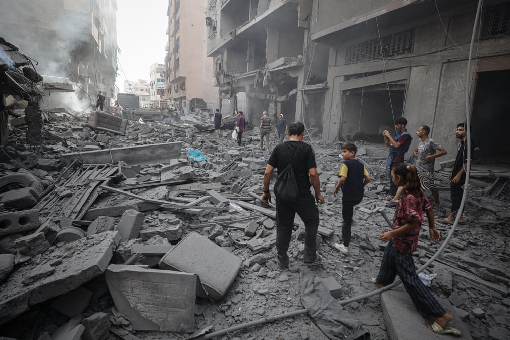 Twenty photographs of the week 금주 최고의 월드 보도사진 20選 (8 Aug 2025) The week around the world in 20 pictures (8 Aug 2025) 🪂🧳🎁Palestinians rush to collect humanitarian aid airdropped by parachutes into Gaza City. # Jehad Alshrafi/AP 팔레스타인 사람들이 낙하산으로 가자지구에 투하된 인도적 지원품을 받으러 서두르고 있다. 가자지구에 공수된 구호품, 도네츠크 최전선, 유럽 전역의 산불, 그리고 영국과 인도의 제5회 테스트 경기 등: 세계 최고의 사진기자들이 포착한 지난 7일간의 기사 및 보도사진. Aid airdrops in Gaza, the frontline in Donetsk, wildfires all over Europe and the fifth test match between England and India: the past seven days as captured by the world’s leading photojournalists. Jim Powell Warning: this gallery contains images that some readers may find distressing Fri 8 Aug 2025 19.20 BST 1. Gaza. Photographed from a Jordanian aid plane, Gaza looks like the ruins of an ancient civilisation, brought to light after centuries of darkness. A patchwork of concrete shapes and shattered walls, neighbourhoods scattered with craters, rubble and roads that lead nowhere. The remnants of cities wiped out. # Alessio Mamo/The Guardian 가자. 요르단 구호 비행기에서 촬영한 가자 지구의 모습은 수세기에 걸친 암흑 끝에 밝혀진 고대 문명의 폐허처럼 보인다. 콘크리트 모양과 부서진 벽, 폭탄 분화구로 흩어진 동네, 잔해, 어디로도 연결되지 않는 도로가 뒤섞인 조각보이다. 도시의 잔재가 사라졌다. 2. Gaza City. Smoke rises amid debris after Israel targeted the area near Abbas Junction in western Gaza City. The future of a million Palestinians hangs in the balance after Israel’s security cabinet this week approved a new ground offensive aimed at taking complete control of Gaza’s largest city in a decision that has triggered global outrage. # Khames Alrefi/Anadolu/Getty Images 가자시티. 이스라엘이 가자시티 서부 아바스 교차로 인근 지역을 공격한 후, 잔해 속에서 연기가 피어오르고 있다. 이스라엘 안보 내각이 이번 주 가자지구 최대 도시를 완전히 장악하기 위한 새로운 지상 공세를 승인하면서 백만 팔레스타인 주민의 미래가 위태로워졌다. 이 결정은 전 세계적인 분노를 촉발했다. 3. Gaza City. Palestinians at Shifa hospital mourn a relative who was killed while trying to reach aid trucks entering the northern Gaza Strip through the Zikim crossing from Israel. The Israeli plan to take complete control of Gaza City would entail a further escalation in the 22-month war and mean more mass displacements of an exhausted and starving population. # Jehad Alshrafi/AP 가자시티. 시파 병원의 팔레스타인 주민들이 이스라엘에서 지킴 국경을 통해 북부 가자지구로 들어오는 구호 트럭에 다가가려고 시도하다 사망한 친척을 애도하고 있다. 이스라엘이 가자시티를 완전히 장악하려는 계획은 22개월간의 전쟁을 더욱 격화시키고, 지치고 굶주린 주민들의 대규모 이주를 초래할 것이다. 4. Khan Younis, Gaza. Palestinians wait to receive food from a charity kitchen in Khan Younis. Michael Fakhri, the UN expert who first warned that Israel was orchestrating a campaign of deliberate mass starvation in Gaza more than 500 days ago, has said that governments and corporations cannot claim to be surprised at the horror now unfolding. # Hatem Khaled/Reuters 가자지구 칸 유니스. 팔레스타인 주민들이 칸 유니스의 자선 식당에서 음식을 받기 위해 기다린다. 500여 일 전 이스라엘이 가자지구에서 고의적인 대량 기아사태를 조직하고 있다고 처음 경고했던 유엔 전문가 마이클 파크리는 정부와 기업들이 현재 벌어지고 있는 참상에 놀라지 않을 수 없다고 말했다. 5. Gaza City. Palestinians rush to collect humanitarian aid airdropped by parachutes into Gaza City. Widespread starvation, malnutrition and disease are driving the sharp rise in hunger-related deaths across Gaza, with more than 20,000 children hospitalised for acute malnutrition between April and mid-July, according to the Integrated Food Security Phase Classification, a global initiative that provides real-time data on hunger and famine for the UN and aid groups. # Jehad Alshrafi/AP 가자시티. 팔레스타인 주민들이 낙하산으로 가자시티에 투하된 인도적 지원품을 받으러 서두르고 있다. 유엔과 지원 단체에 기아와 기근에 대한 실시간 데이터를 제공하는 국제 이니셔티브인 통합식량안보단계분류(IFSC)에 따르면, 만연한 기아, 영양실조, 질병으로 인해 가자지구 전역에서 기아 관련 사망자가 급증하고 있으며, 4월부터 7월 중순까지 2만 명이 넘는 어린이가 급성 영양실조로 입원했다. 6. Jerusalem. Orthodox Jews pray as they read from the book of Eicha to mark Tisha B’av, at the Western Wall in the Old City of Jerusalem. In Judaism, the Tisha B’Av is an annual fasting day marking the destruction of the first and the second temple by the Babylonian and Roman empires in Jerusalem. # Abir Sultan/EPA 예루살렘. 정통 유대교인들이 예루살렘 구시가지 서쪽 성벽에서 티샤 베아브를 기념하며 에이카서를 읽으며 기도하고 있다. 유대교에서 티샤 베아브는 바빌로니아와 로마제국이 예루살렘에 있는 제1성전과 제2성전을 파괴한 것을 기념하는 연례 금식일이다. 7. Kyiv, Ukraine. A colleague cries as she looks at a portrait of Viktoriia Roshchyna, 27, a journalist who reported on the Russian invasion of Ukraine, during her funeral in central Kyiv. Roshchyna was reporting on Russia’s systematic policy of extrajudicial detention and torture in occupied parts of Ukrai