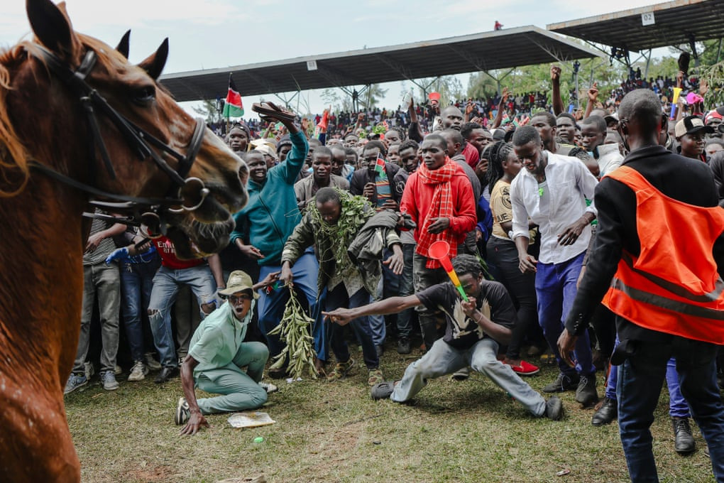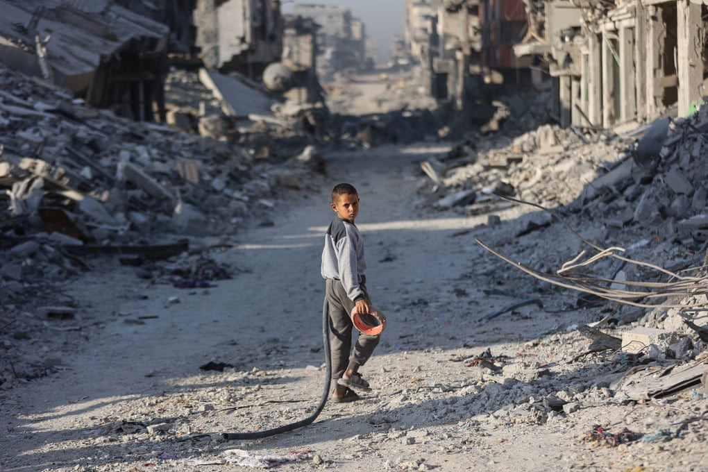 1. Gaza. Displaced Palestinian children play outside the damaged Imam al-Shafi’i mosque, where their families have taken shelter in Gaza City. The World Health Organization said this week that there has been little improvement in the amount of aid going into Gaza since the ceasefire took hold – and no observable reduction in hunger. # Omar Al-Qattaa/AFP/Getty 가자지구. 난민 팔레스타인 어린이들이 그들의 가족이 가자시티에 피난처를 마련한 파손된 이맘 알-샤피이 모스크 밖에서 놀고 있다. 세계보건기구(WHO)는 이번 주 휴전 이후 가자지구에 대한 지원 규모에 거의 진전이 없었으며, 기아 감소도 눈에 띄게 나타나지 않았다고 밝혔다. 2. Gaza. A Palestinian girl hangs clothes to dry inside the Imam al-Shafi’i mosque. Prominent Jewish figures around the world have called on the UN and world leaders to impose sanctions on Israel over what they describe as ‘unconscionable’ actions amounting to genocide. # Omar Al-Qattaa/AFP/Getty 가자지구. 한 팔레스타인 소녀가 이맘 알-샤피이 모스크 안에서 빨랫감을 말리고 있다. 전 세계 저명한 유대인 인사들은 유엔과 세계 지도자들에게 이스라엘의 이러한 행위를 '양심에 어긋나는' 행위로 규정하고, 집단학살에 해당하는 제재를 부과할 것을 촉구했다. 3. Khan Younis, Gaza. Wounded children receive treatment at Nasser hospital after an Israeli strike on a tent sheltering displaced people in Khan Younis. Israel launched waves of airstrikes last Sunday after a reported attack by Hamas, in the most serious escalation since the fragile ceasefire began. # Haitham Imad/EPA 가자지구 칸 유니스. 이스라엘군이 칸 유니스의 난민 텐트를 공격한 후, 부상당한 어린이들이 나세르 병원에서 치료를 받고 있다. 이스라엘은 지난 일요일 하마스의 공격이 보도된 후 공습을 단행했는데, 이는 불안정한 휴전이 시작된 이후 가장 심각한 상황으로 치닫고 있다. 4. Sa’ir, West Bank. Israeli settlers and Israeli forces block Palestinians accessing an area for harvesting olives in the West Bank village of Sa’ir. As the war draws down, Palestinians fear Israel will turn its focus on the West Bank. # Léo Corrêa/AP 서안지구 사이르. 이스라엘 정착민들과 이스라엘군이 서안지구 사이르 마을에서 올리브 수확 지역에 접근하는 팔레스타인인들을 봉쇄하고 있다. 전쟁이 장기화됨에 따라 팔레스타인인들은 이스라엘이 서안지구에 다시 관심을 돌릴 것을 우려하고 있다. 5. Paris, France. A forensics officer examines the cut window and balcony of a gallery at the Louvre after a robbery. Two of the four-man gang broke into the gallery at 9.30am on Sunday. They made off with eight pieces of jewellery, including a diadem that once belonged to the Empress Eugénie, wife of Napoleon III. # Kiran Ridley/Getty 프랑스 파리. 루브르 박물관 강도 사건 후 갤러리의 깨진 창문과 발코니를 법의학자가 조사하고 있다. 일요일 오전 9시 30분에 4인조 갱단 중 2명이 갤러리에 침입했다. 그들은 나폴레옹 3세의 왕비였던 유제니 황후의 왕관을 포함한 보석 8점을 훔쳐 달아났다. 6. Vatican. Pope Leo XIV waves to Britain’s King Charles and Queen Camilla in the courtyard of San Damaso after an ecumenical prayer in the Sistine Chapel. The king became the first reigning British monarch to pray publicly with a pope since Henry VIII split from Rome in 1534. # Phil Noble/Reuters 바티칸. 교황 레오 14세가 시스티나 성당에서 열린 세계기도회 후 산 다마소 안뜰에서 영국의 찰스 국왕과 카밀라 왕비에게 손을 흔들고 있다. 찰스 국왕은 1534년 헨리 8세가 로마와 결별한 이후 교황과 함께 공개적으로 기도한 최초의 영국 군주가 되었다. 7. Bondo, Kenya. Supporters of Kenya’s opposition leader and former prime minister, Raila Odinga, chant slogans and hold floral wreaths during his burial ceremony in Bondo. Odinga died in India, triggering a huge outpouring of grief across the country, particularly in western Kenya where his Luo community is dominant. # Luis Tato/AFP/Getty 케냐 본도. 케냐 야당 지도자이자 전 총리였던 라일라 오딩가의 지지자들이 본도에서 열린 그의 장례식에서 구호를 외치며 화환을 들고 있다. 오딩가는 인도에서 사망했고, 전국적으로, 특히 그의 루오족이 주로 거주하는 케냐 서부 지역에서 큰 슬픔이 촉발되었다. 8. Kisumu, Kenya. Mounted police ride into a crowd to quell a surge by mourners pushing forward during a public viewing of the body of Raila Odinga at the Jomo Kenyatta stadium in Kisumu. # Tony Karumba/AFP/Getty 케냐 키수무. 키수무의 조모 케냐타 경기장에서 라일라 오딩가의 시신을 추모하는 조문객들이 몰려들자 기마경찰대가 군중 속으로 돌진해 진압하고 있다. 9. Kyiv, Ukraine. Residents stand by a broken window and look at a neighbouring building damaged by a Russian drone and missile strike in Kyiv. The US this week sanctioned Rosneft and Lukoil, Russia’s two largest oil companies, as the Trump administration increased pressure on the Kremlin to negotiate an end to the war Ukraine. # Genya Savilov/AFP/Getty 우크라이나 키이우. 키이우에서 주민들이 깨진 창문 옆에 서서 러시아의 드론과 미사일 공격으로 파손된 인근 건물을 바라보고 있다. 트럼프 행정부가 우크라이나와의 전쟁 종식을 협상하도록 크렘린궁에 압력을 가하는 가운데, 미국은 이번 주 러시아 최대 석유 회사인 로스네프트와 루코일을 제재했다. 10. Kostiantynivka, Ukraine. Destruction caused by Russian attacks on the town of Kostiantynivka. Vladimir Putin said that Russia would