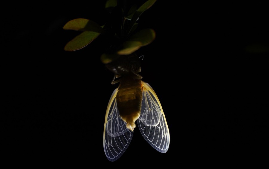 9. The wings of an adult cicada are silhouetted by a distant street light in Chevy Chase, Maryland, on May 13, 2021. # Carolyn Kaster / AP 성충(成蟲) 매미의 날개가 2021년 5월 13일 메릴랜드주 체비체이스에서 멀리 떨어진 가로등에 의해 실루엣으로 보인다.