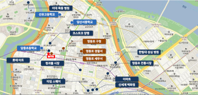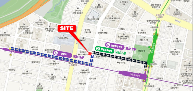 서울 지하철 2호선, 5호선 환승역 영등포구청역 도보 6~7분 소요