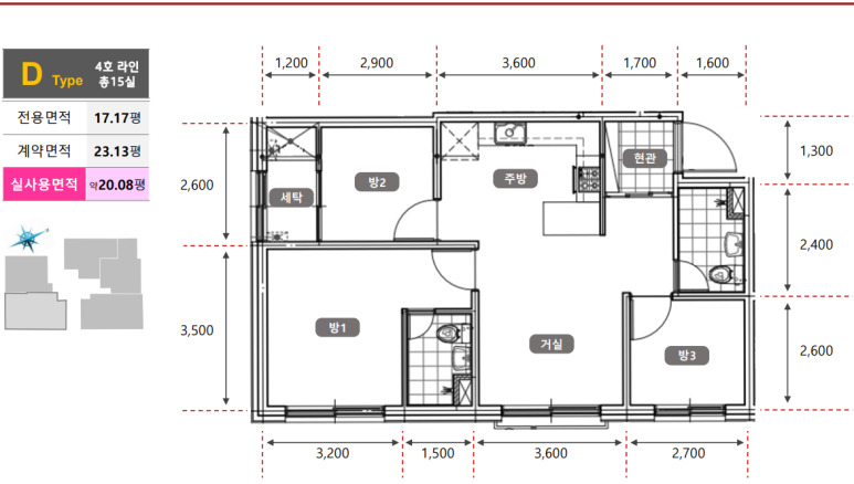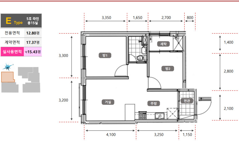 2룸, 3룸 전세대 전용면적 60㎡ 이하, 6억원 이하, 주거용 오피스텔 75세대