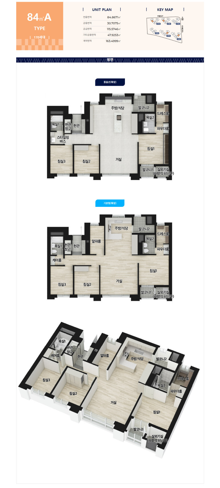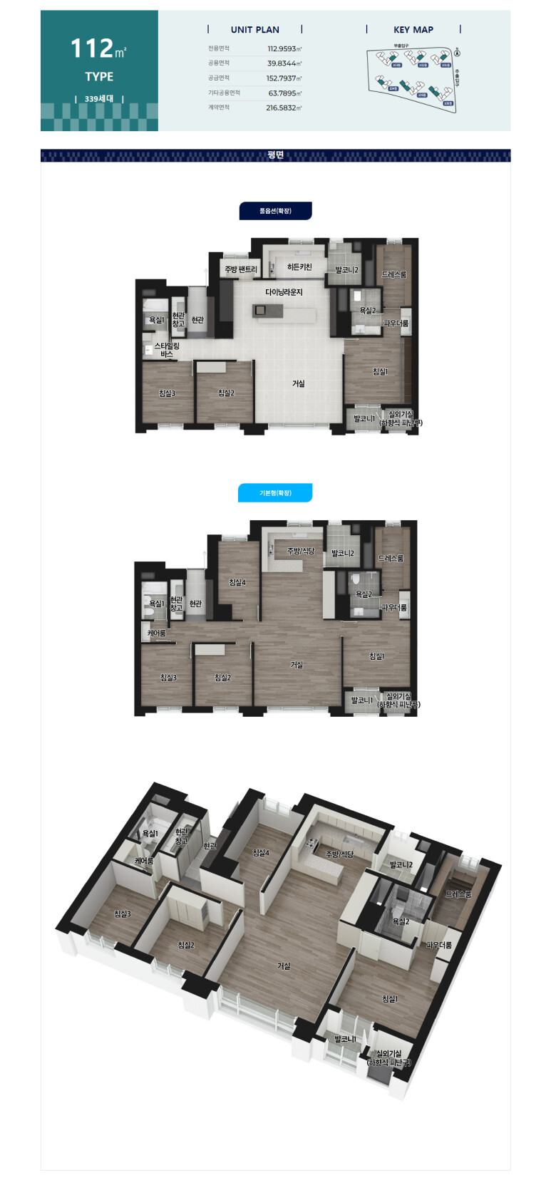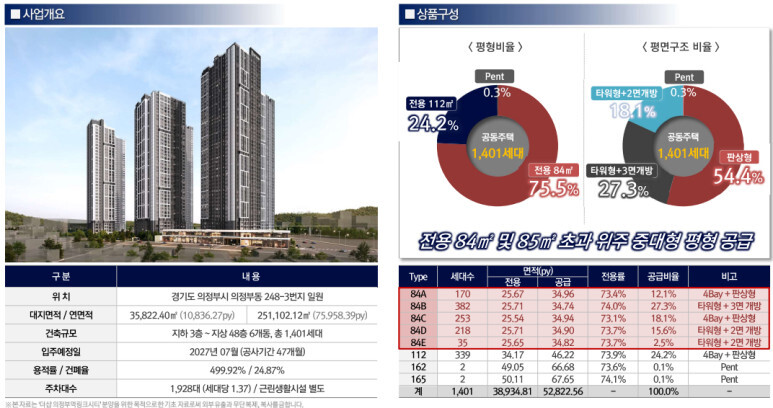 지하 3층 ~ 지상 48층, 6개동 1,401세대, 전세대 중대형 평형, 남향 위주 배치