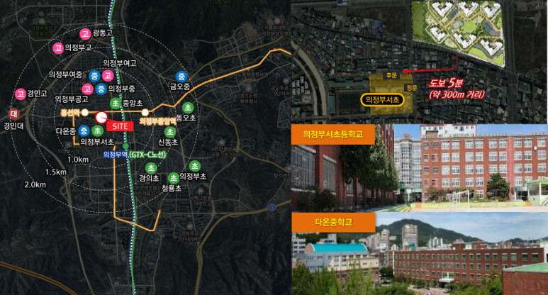 특히, 당 사업지 앞 약 300m 거리의 내 의정부서초 위치하여 도보권 이용 가능