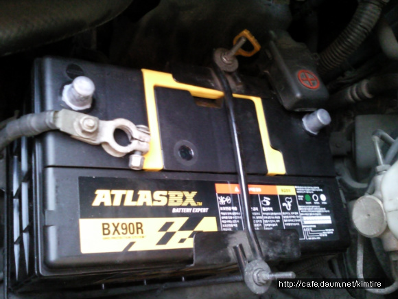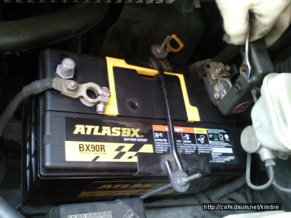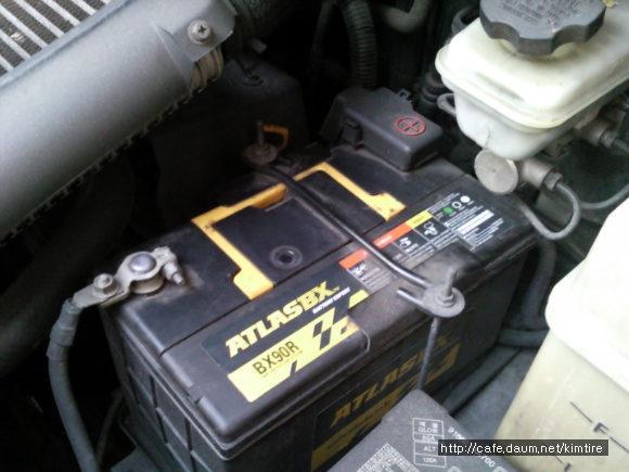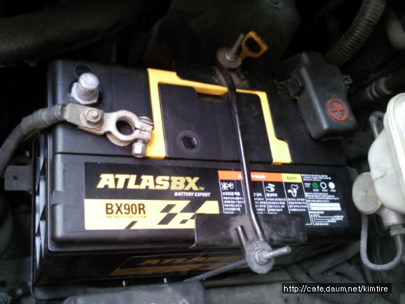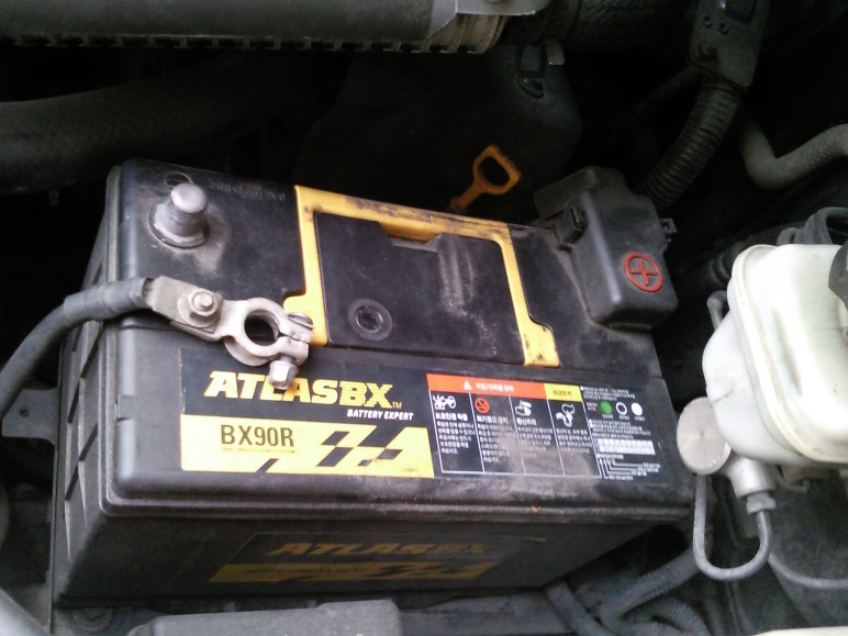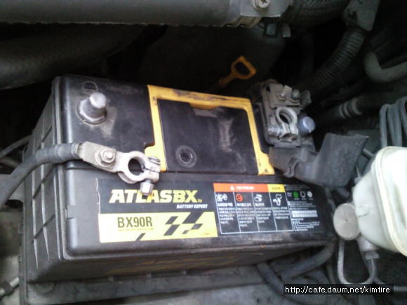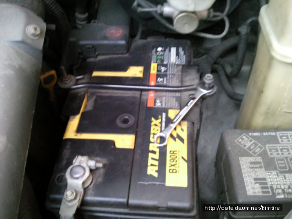 4. 현재 사용하고 있는 배터리 교체시 우선 음극단자(-)부터 전선의 케이블을 제거한다.