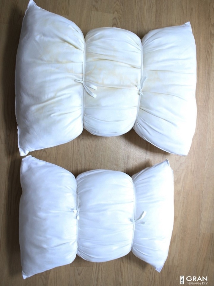 그 다음 베개가 3등분이 되도록 묶어주세요.