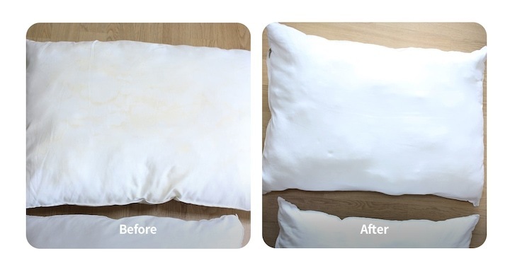 베개 솜에서 나던 냄새도 없어지고 얼룩도 깨끗하게 없어졌어요.