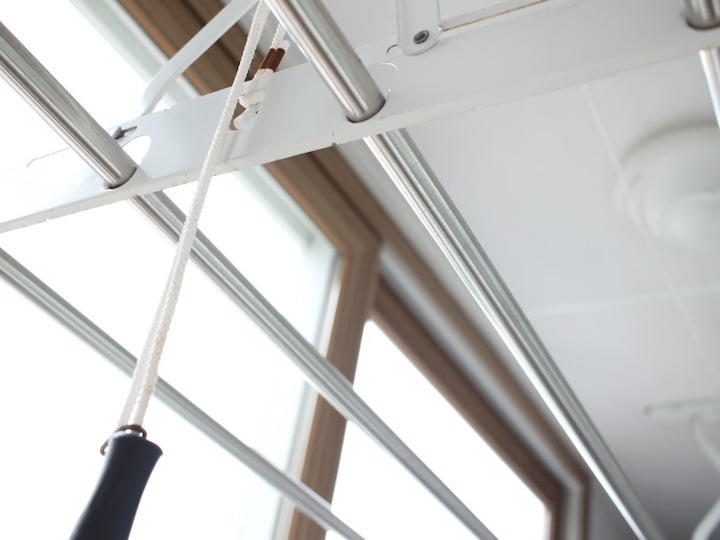세탁기가 돌아가는 동안 베개 솜을 널기 위해 빨리 건조대를 깨끗하게 닦아주었어요.