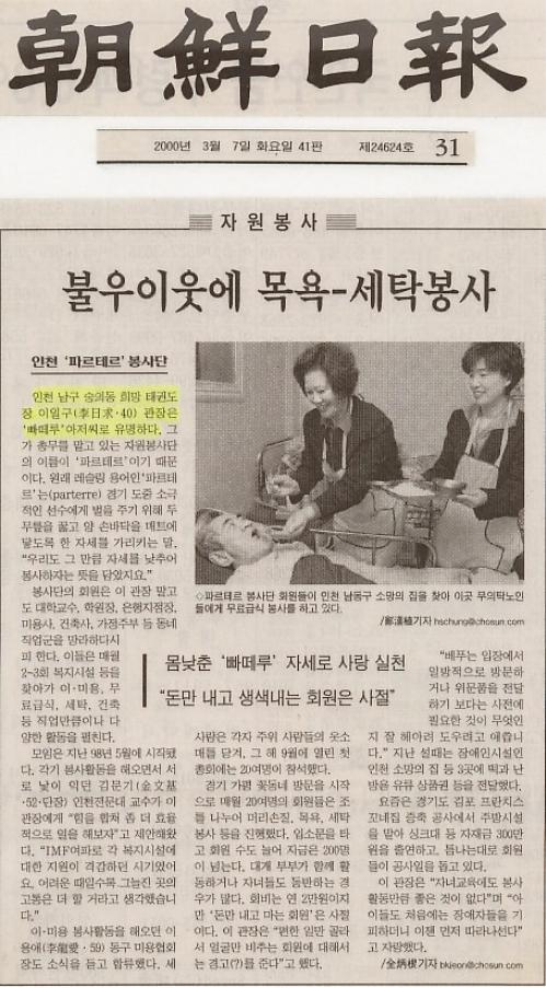 [219]몸 낮춘 빠떼루 자세로 사랑 실천...(2000/03/07) 작성자kinesio|작성시간14.12.20|조회수92 목록 댓글 0 글자크기 작게가 글자크기 크게가 ㆍ제 목: 몸 낮춘 ‘빠떼루’ 자세로 사랑실천ㆍ일 시: 2000년 3월 7일(화)ㆍ언론사: 조선일보사 ㆍ내 용: 불우이웃에 목욕, 세탁 봉사 다음검색 현재 게시글 추가 기능 열기 북마크 공유하기 신고 센터로 신고 댓글 댓글 0 댓글쓰기 답글쓰기 댓글 리스트