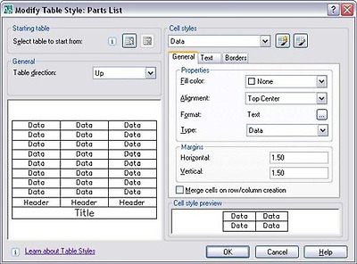 유용성과 유연성을 높이도록 Table Style 대화상자가 업데이트되었습니다. 이 대화상자에는 새로운 테이블 스타일을 정의하기 위한 시작점으로서 기존 테이블을 선택하는 새로운 옵션이 포함됩니다. 추가 형식 및 표시 옵션을 사용하면 테이블 셀 외곽선과 여백을 훨씬 유연하게 조정할 수 있습니다. 그리고 다양한 서식 지정 옵션의 조합으로 명명된 셀 스타일을 손쉽게 저장하고 미리 보고 적용할 수 있습니다.