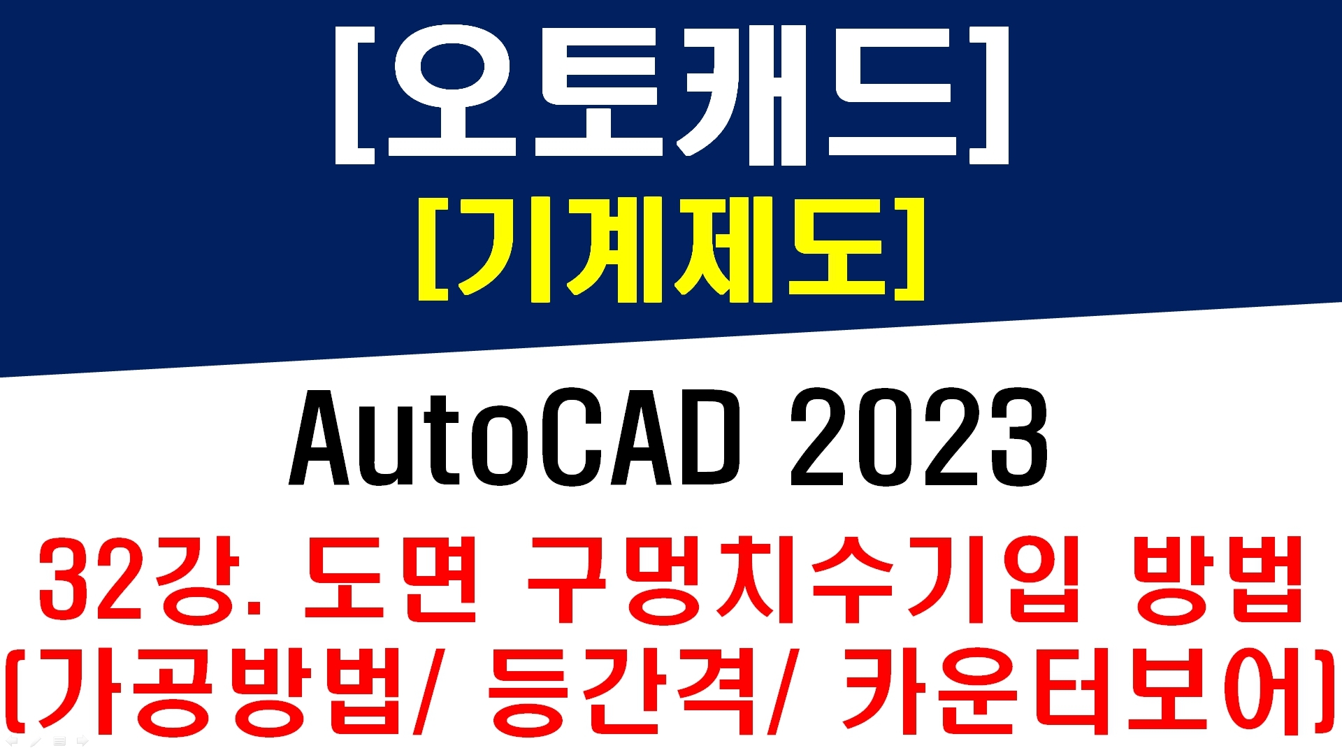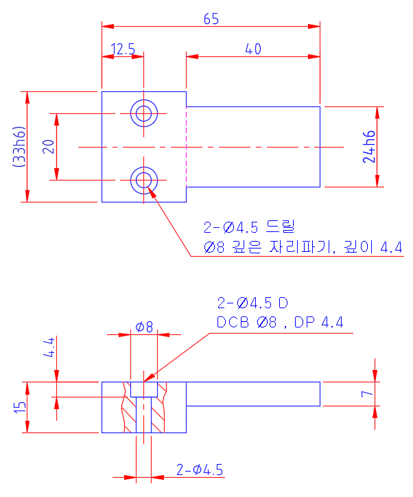 오토캐드 2023 - 기계제도 32강 도면의 구멍 치수기입 방법 (가공방법, 등간격, 부분단면, 해칭, 카운터보어 표시)