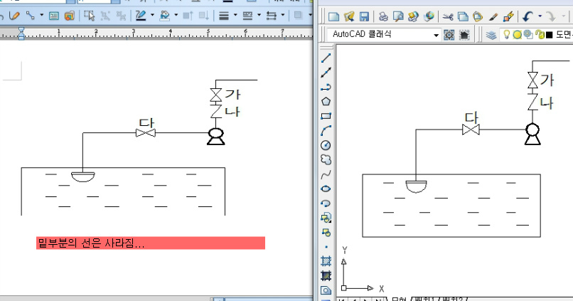 이렇게 작업 하면 아래 사진과 같이 나옵니다. 도면에 작업된 그대로 그림 삽입 시키려면 어떻게 작업해야할까요?