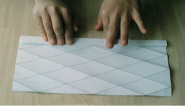 ※ 주의 : 가로선(점선은) 대각선(실선) 방향과 반대로 접어야 하며([그림 3]의 ①과 ②는 반대로 접혀야 한다.) 윤곽이 뚜렷하게 접되 찢어지지 않게 조심한다.