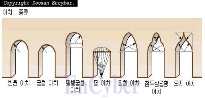 어느 것이나 쐐기의 원리로 위로부터의 무게를 받치는 힘이 강한 점은 아치와 같다.