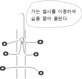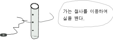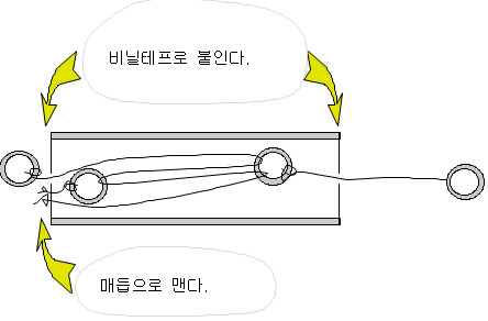 라. 실의 연결이 끝났으면 통의 양쪽 구멍을 미리 잘라둔 하드보드지를 붙여 밀봉한다.