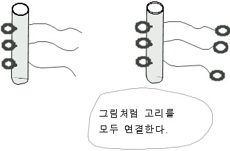 완성이다. 통의 바깥으로 나와 있는 고리를 하나씩 당겨보자. 끌려오는 고리가 예상과 같은가? 통 속에서 얽혀있는 연결 방법을 모르는 이들은 아무래도 이상하게 여길 것이다.